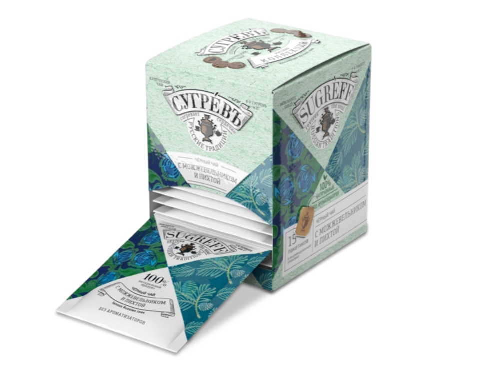 Чай черный с можжевельником и пихтой в индивидуальном саше конверте 15 пакетиков купить оптом и в розницу с нанесением логотипа в Нижнем Новгороде