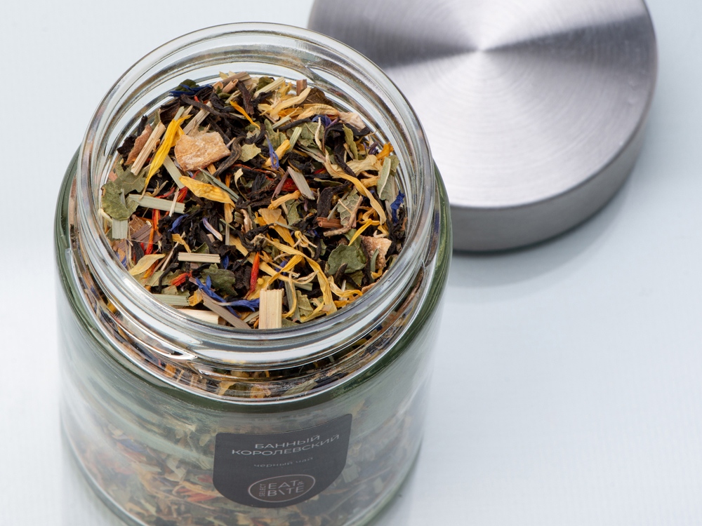 Чай черный Банный королевский, серия Essence Серия чая Essence создана с большим вниманием к натуральности и качеству компонентов. Чайные сборы серии не содержат ароматизаторов, красителей и отдушек, позволяя передать чистый и яркий вкус природного чая и трав. Чёрный индийский листовой чай относится к категории TGFOP, - помимо молодых чайных листиков он содержит нераскрывшиеся листовые почки чайного куста, которые придают чаю более мягкий и нежный вкус. Необычный вкус этому сбору добавляет разнообразие дополнительных трав, - нежный василёк, душистый смородиновый лист, сладкие цветы липы и др.. Такой чай вернёт воспоминания о лете и наполнит солнечным светом даже зимой! - вес чая: 40 гр.; - состав сбора: чай чёрный индийский листовой, смородина лист, лимонная трава, цедра лимона, лепестки василька, лепестки календулы, липа цвет, ежевика лист, лепестки сафлора, мята, имбирь; - упакован в стильную стеклянную банку, которая сохраняет все ароматы чая.
