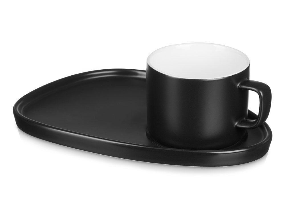 Чайная пара Brighton : блюдце овальное, чашка, коробка, черный купить оптом и в розницу с нанесением логотипа в Нижнем Новгороде