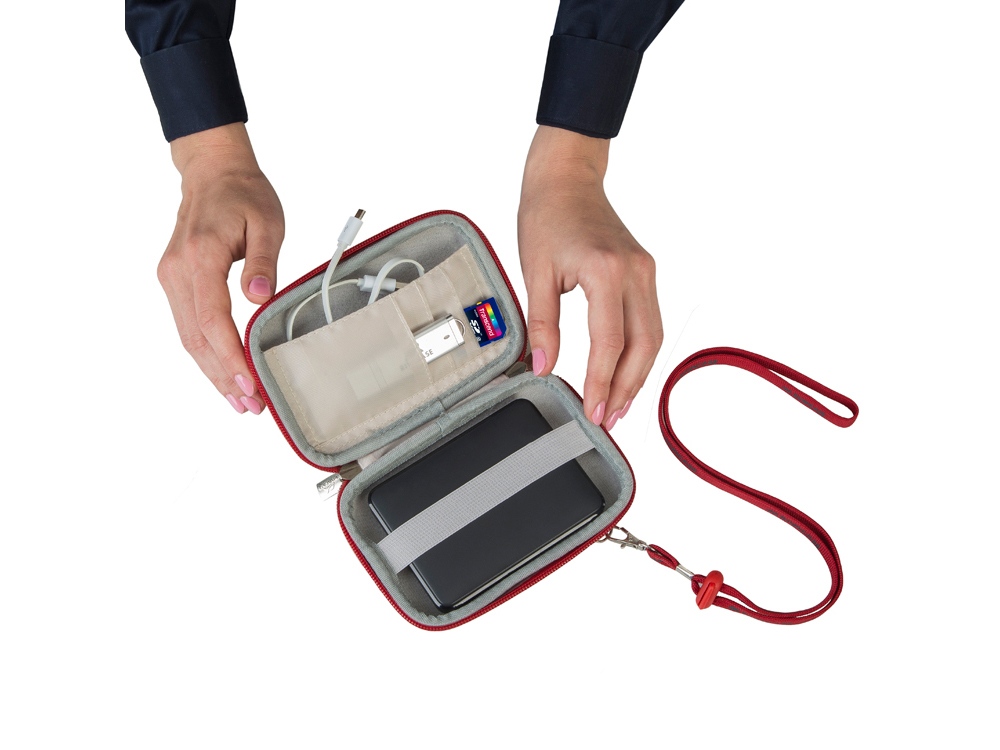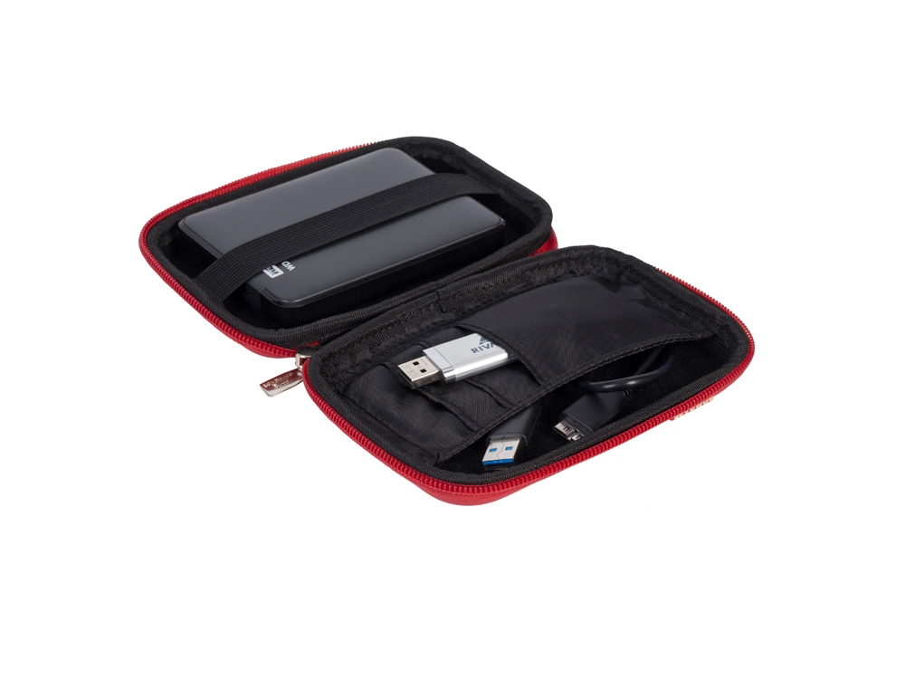 Чехол для внешнего жесткого диска (HDD). • Подходит для большинства 2.5 HDD. • Чехол создан из высококачественного материала EVA, он надежно защищает от внешних воздействий, случайных ударов и царапин, а также от пыли и влаги. • Предусмотрена возможность крепления на поясном ремне. • В комплекте ремень для ношения чехла на плече или на шее. • Устройство надежно крепится внутри чехла специальной фиксирующей лентой, кроме того предусмотрены дополнительные внутренние карманы для кабеля, карт памяти и аксессуаров. • Двойная застежка молния для удобного доступа к устройству.
