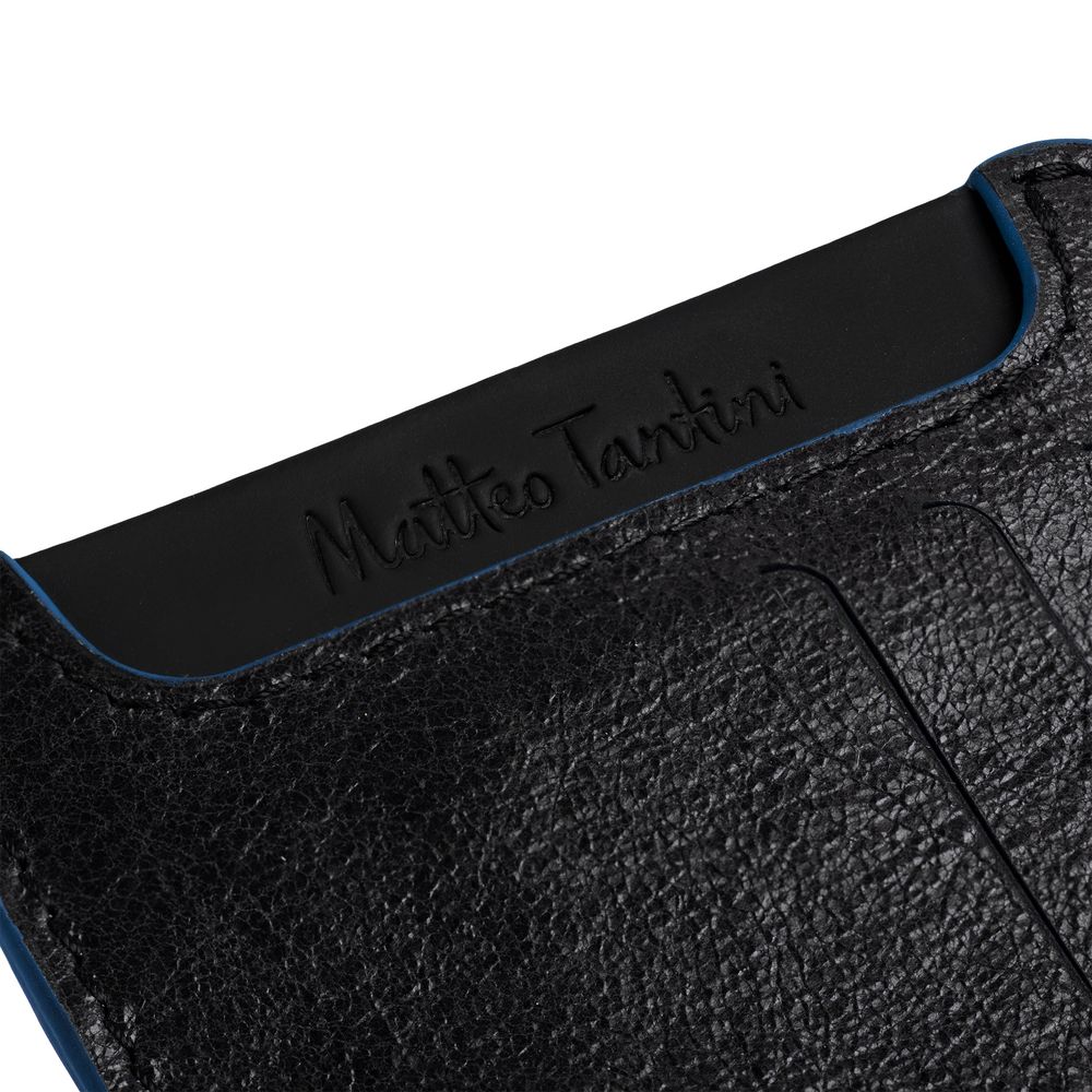 Чехол для карточек Arrival, черный с синим купить оптом и в розницу с нанесением логотипа в Нижнем Новгороде