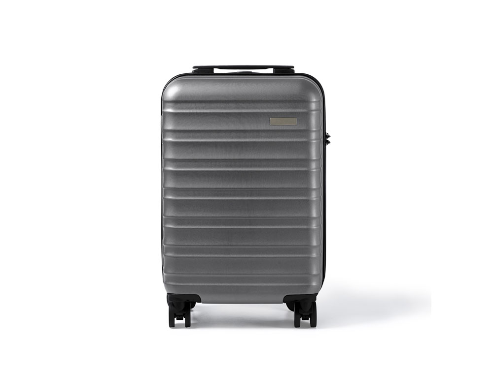 Чемодан из прочного АБС-пластика. Внутри два основных отделения и дополнительный сетчатый карман. Включает встроенный замок безопасности TSA. Поворотные колеса, облегчающие передвижение в любом направлении.