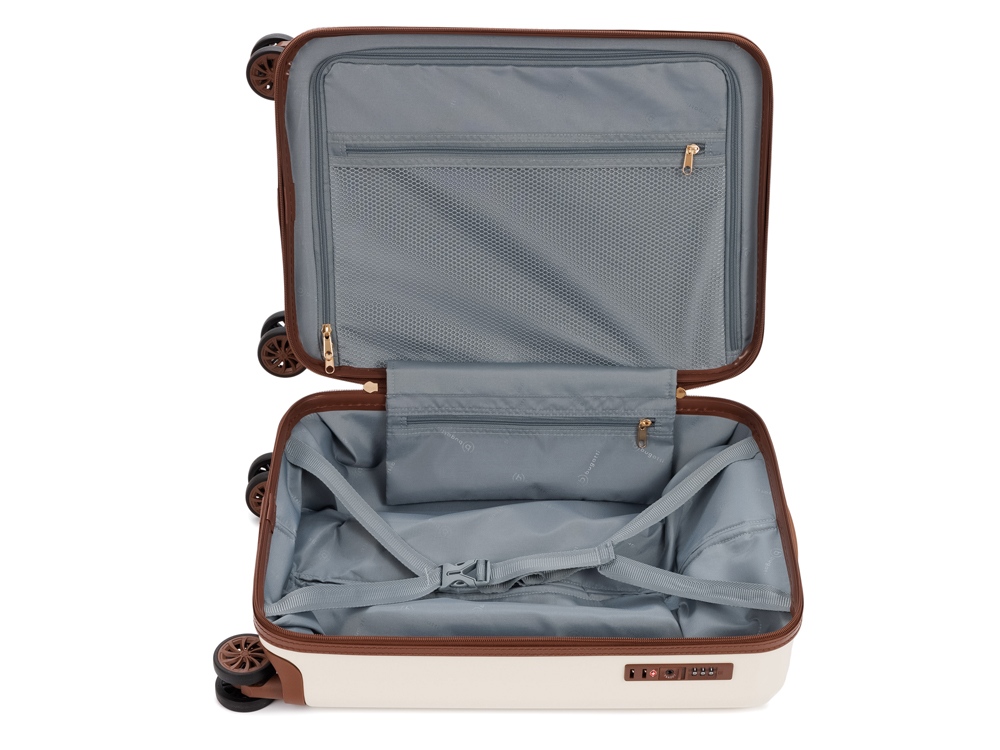 AMELIA - невероятная коллекция чемоданов в ретро стиле. Приглашаем вас в мир изящной элегантности и практичной изысканности - в мир потрясающей коллекции чемоданов AMELIA. Наши чемоданы – не просто средства для путешествий, это искусно созданные аксессуары, воплощающие утонченный стиль и комфорт. AMELIA воплощает собой неповторимый образ, сочетающий эстетику ретро с современной функциональностью. Вся товарная линейка представлена в великолепных темно-изумрудном и кремовом оттенках. Контрастные детали насыщенного коричневого цвета, бронзовые ручки и фурнитура идеально дополняют дизайн, подчеркивают индивидуальность и выразительность каждой модели. Изготовленные из высококачественного АБС-пластика и поликарбоната, чемоданы AMELIA обладают удивительной прочностью и легкостью. Четыре резиновых колеса с бесшумным ходом и возможностью поворота на 360° обеспечивают плавное передвижение по любой поверхности, сохраняя при этом полную маневренность. Интегрированный замок TSA с трехзначным кодом гарантирует защиту вашего багажа от несанкционированного доступа. Продуманная концепция больших отделений с перегородкой на молнии и дополнительными карманами максимально оптимизирует использование внутреннего пространства. Легкая телескопическая ручка с несколькими положениями фиксации обеспечивает комфорт в использовании для людей разного роста. Удобные ручки сбоку и на дне корпуса облегчают загрузку и выгрузку чемодана. Боковые держатели позволяют разместить дополнительные дорожные аксессуары. Коллекция чемоданов AMELIA – это виртуозное сочетание эксклюзивного дизайна, комфорта и надежности, созданное для тех, кто ценит эстетику и функциональность в каждом своем путешествии. СВОЙСТВА Внутренняя организация: основное отделение на молнии с 2 отсеками, сетчатой перегородкой с карманом на молнии, дополнительным карманом на молнии и 2 фиксирующими ремнями. Внешняя организация: телескопическая ручка, интегрированный кодовый замок TSA, 4 двойных колеса, боковая ручка, боковые держатели. Размер: 32 х 22 х 53 см Объём: 30 л Вес: 2,70 кг Материал: Поликарбонат / АБС-пластик
