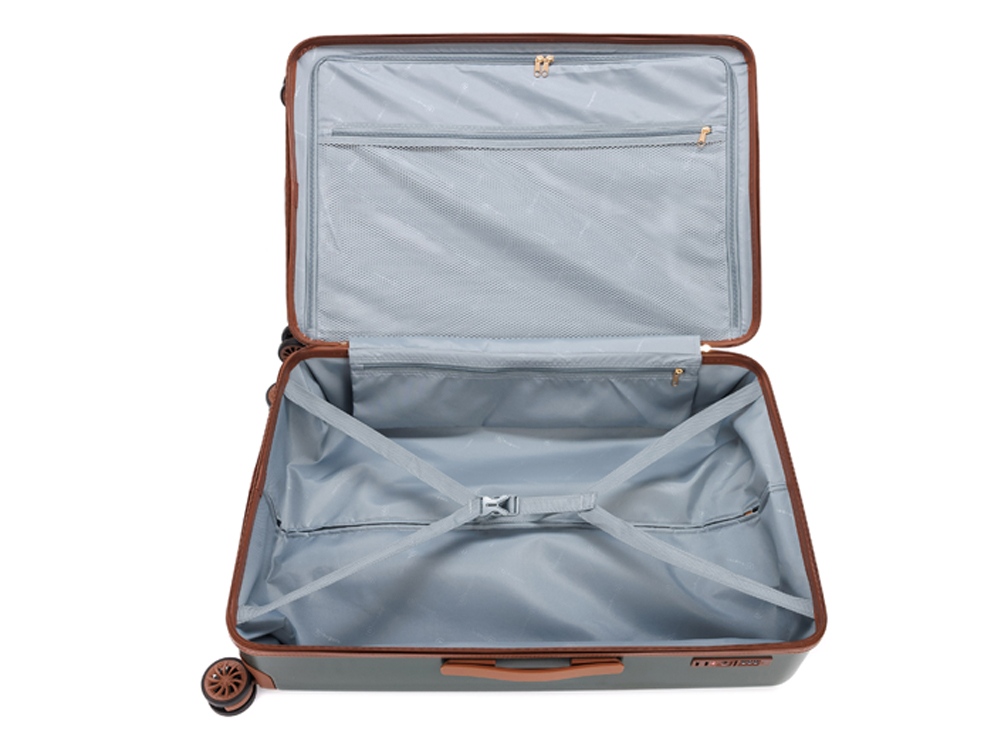 AMELIA - невероятная коллекция чемоданов в ретро стиле. Приглашаем вас в мир изящной элегантности и практичной изысканности - в мир потрясающей коллекции чемоданов AMELIA. Наши чемоданы – не просто средства для путешествий, это искусно созданные аксессуары, воплощающие утонченный стиль и комфорт. AMELIA воплощает собой неповторимый образ, сочетающий эстетику ретро с современной функциональностью. Вся товарная линейка представлена в великолепных темно-изумрудном и кремовом оттенках. Контрастные детали насыщенного коричневого цвета, бронзовые ручки и фурнитура идеально дополняют дизайн, подчеркивают индивидуальность и выразительность каждой модели. Изготовленные из высококачественного АБС-пластика и поликарбоната, чемоданы AMELIA обладают удивительной прочностью и легкостью. Четыре резиновых колеса с бесшумным ходом и возможностью поворота на 360° обеспечивают плавное передвижение по любой поверхности, сохраняя при этом полную маневренность. Интегрированный замок TSA с трехзначным кодом гарантирует защиту вашего багажа от несанкционированного доступа. Продуманная концепция больших отделений с перегородкой на молнии и дополнительными карманами максимально оптимизирует использование внутреннего пространства. Легкая телескопическая ручка с несколькими положениями фиксации обеспечивает комфорт в использовании для людей разного роста. Удобные ручки сбоку и на дне корпуса облегчают загрузку и выгрузку чемодана. Боковые держатели позволяют разместить дополнительные дорожные аксессуары. Коллекция чемоданов AMELIA – это виртуозное сочетание эксклюзивного дизайна, комфорта и надежности, созданное для тех, кто ценит эстетику и функциональность в каждом своем путешествии. СВОЙСТВА Внутренняя организация: основное отделение на молнии с 2 отсеками, сетчатой перегородкой с карманом на молнии, дополнительным карманом на молнии и 2 фиксирующими ремнями. Внешняя организация: телескопическая ручка, интегрированный кодовый замок TSA, 4 двойных колеса, боковая ручка, ручка на дне, боковые держатели. Размер: 50 х 29 х 76 см Объём: 85 л Вес: 4,70 кг Материал: Поликарбонат / АБС-пластик