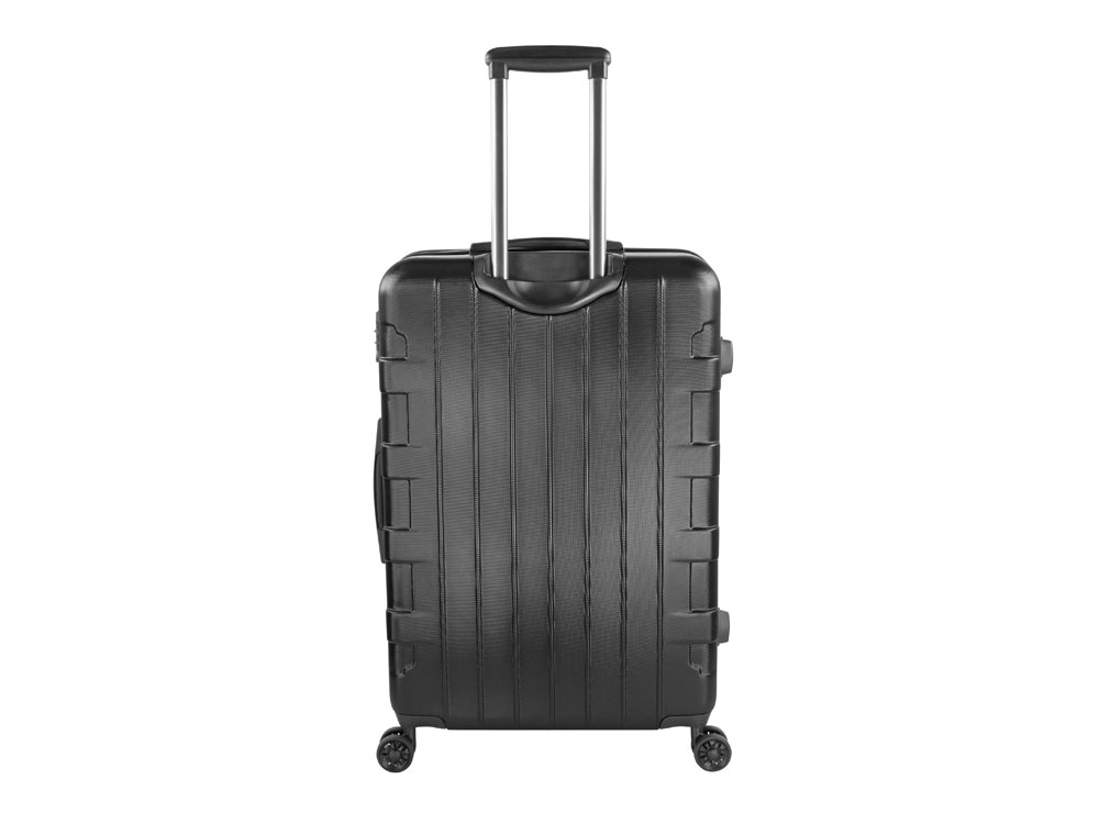 ЧЕМОДАН GALATEA Galatea - наша неповторимая серия чемоданов с рельефно нанесённым на корпус большим логотипом Bugatti. Вся товарная линейка представлена в классическом чёрном цвете. Благодаря корпусу, сделанному из смеси АБС-пластика и поликарбоната, каждая модель отличается лёгким весом и повышенной прочностью. Четыре резиновых колеса с бесшумным ходом и возможностью поворота на 360° обеспечивают ровное движение. Лёгкая телескопическая ручка эргономичной формы фиксируется в нескольких положениях для удобства пользователей с разным ростом. Замок TSA с трехзначным кодом идеально подходит для защиты содержимого багажа от несанкционированного вскрытия. Дополнительная ручка на дне корпуса облегчает загрузку и выгрузку чемодана. Сетчатые разделительные стенки на молнии растягиваются для удобства упаковки, а фиксирующие ремни охватывают большую поверхность и обеспечивают сохранность сложенных вещей. СВОЙСТВА Внутренняя организация: основное отделение на молнии с 2 отсеками, 2 сетчатыми перегородками на молнии и фиксирующими ремнями Внешняя организация: телескопическая ручка, кодовый замок TSA, 4 двойных колеса, боковая ручка, ручка на дне Размер: 53 x 30,5 x 77 см Объём: 96 л Вес: 4,26 кг Материал: поликарбонат / АБС-пластик