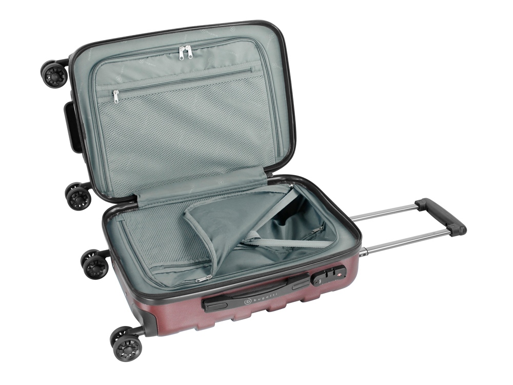 ЧЕМОДАН GALATEA Galatea - наша неповторимая серия чемоданов с рельефно нанесённым на корпус большим логотипом Bugatti. Вся товарная линейка представлена в классическом черном и бордовом цветах. Благодаря корпусу, сделанному из смеси АБС-пластика и поликарбоната, каждая модель отличается лёгким весом и повышенной прочностью. Четыре резиновых колеса с бесшумным ходом и возможностью поворота на 360° обеспечивают ровное движение. Лёгкая телескопическая ручка эргономичной формы фиксируется в нескольких положениях для удобства пользователей с разным ростом. Замок TSA с трехзначным кодом идеально подходит для защиты содержимого багажа от несанкционированного вскрытия. Дополнительная ручка на дне корпуса облегчает загрузку и выгрузку чемодана. Сетчатые разделительные стенки на молнии растягиваются для удобства упаковки, а фиксирующие ремни охватывают большую поверхность и обеспечивают сохранность сложенных вещей. СВОЙСТВА Внутренняя организация: основное отделение на молнии с 2 отсеками, 2 сетчатыми перегородками на молнии и фиксирующими ремнями Внешняя организация: телескопическая ручка, кодовый замок TSA, 4 двойных колеса, боковая ручка, ручка на дне Размер: 36,5 x 24,5 x 56 см Объём: 38 л Вес: 2,78 кг Материал: поликарбонат / АБС-пластик