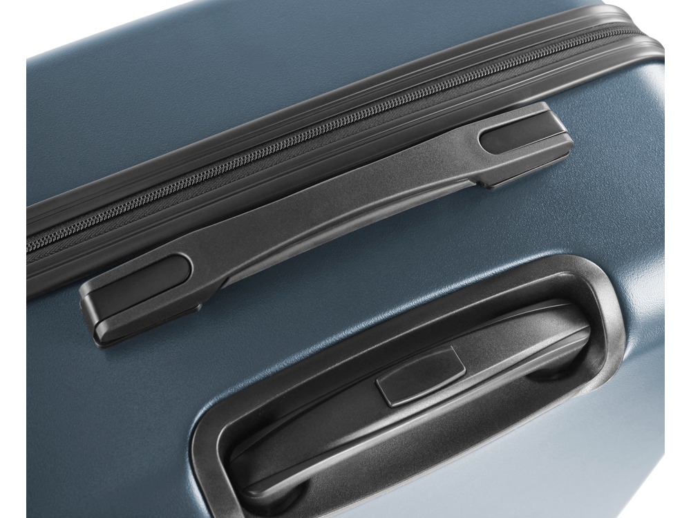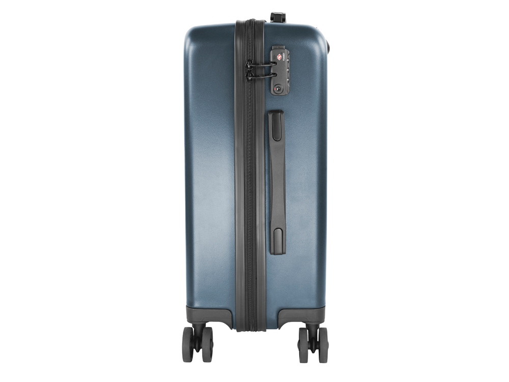 ЧЕМОДАН KALLISTO Серия Kallisto воплощает собой нашу страсть к путешествиям. Тонкие диагональные полосы и стильная поверхность с металлическим оттенком подчёркивают непринужденную привлекательность коллекции, представленной в чёрном и тёмно-синем цветах. Логотип Bugatti аккуратно встроен в металлический шильдик на корпусе. Четыре двойных резиновых колеса просты в управлении и очень удобны. Они могут вращаться на 360°, обеспечивая лёгкий ход по любой поверхности при сохранении полной манёвренности. Лёгкая выдвижная телескопическая ручка удобно фиксируется в нескольких положениях. Замок TSA с трехзначным кодом надёжно защищает содержимое багажа от несанкционированного доступа, а дополнительная ручка на дне корпуса облегчает загрузку и выгрузку чемодана. Продуманная концепция больших отделений с внутренней перегородкой на молнии позволяет максимально практично использовать внутреннее пространство. СВОЙСТВА Внутренняя организация: основное отделение на молнии с 2 отсеками, сетчатой перегородкой с карманом на молнии, карманом на молнии и 2 фиксирующими ремнями Внешняя организация: телескопическая ручка, кодовый замок TSA, 4 двойных колеса, боковая ручка, ручка на дне Размер: 35,5 x 23 x 53,5 см Объём: 40 л Вес: 2,70 кг Материал: АБС-пластик