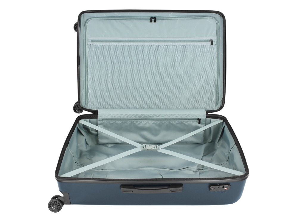 ЧЕМОДАН KALLISTO Серия Kallisto воплощает собой нашу страсть к путешествиям. Тонкие диагональные полосы и стильная поверхность с металлическим оттенком подчёркивают непринужденную привлекательность коллекции, представленной в чёрном и тёмно-синем цветах. Логотип Bugatti аккуратно встроен в металлический шильдик на корпусе. Четыре двойных резиновых колеса просты в управлении и очень удобны. Они могут вращаться на 360°, обеспечивая лёгкий ход по любой поверхности при сохранении полной манёвренности. Лёгкая выдвижная телескопическая ручка удобно фиксируется в нескольких положениях. Замок TSA с трехзначным кодом надёжно защищает содержимое багажа от несанкционированного доступа, а дополнительная ручка на дне корпуса облегчает загрузку и выгрузку чемодана. Продуманная концепция больших отделений с внутренней перегородкой на молнии позволяет максимально практично использовать внутреннее пространство. СВОЙСТВА Внутренняя организация: основное отделение на молнии с 2 отсеками, сетчатой перегородкой с карманом на молнии, карманом на молнии и 2 фиксирующими ремнями Внешняя организация: телескопическая ручка, кодовый замок TSA, 4 двойных колеса, боковая ручка, ручка на дне Размер: 50,5 x 30,5 x 74 см Объём: 100 л Вес: 4,40 кг Материал: АБС-пластик