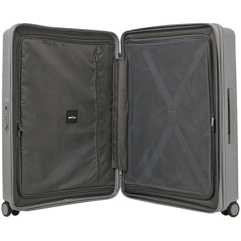• Чемодан с 2 отделениями: одно из них с фиксирующими ремнями и сетчатым разделителем, второе — с разделителем и карманом-органайзером на молнии
