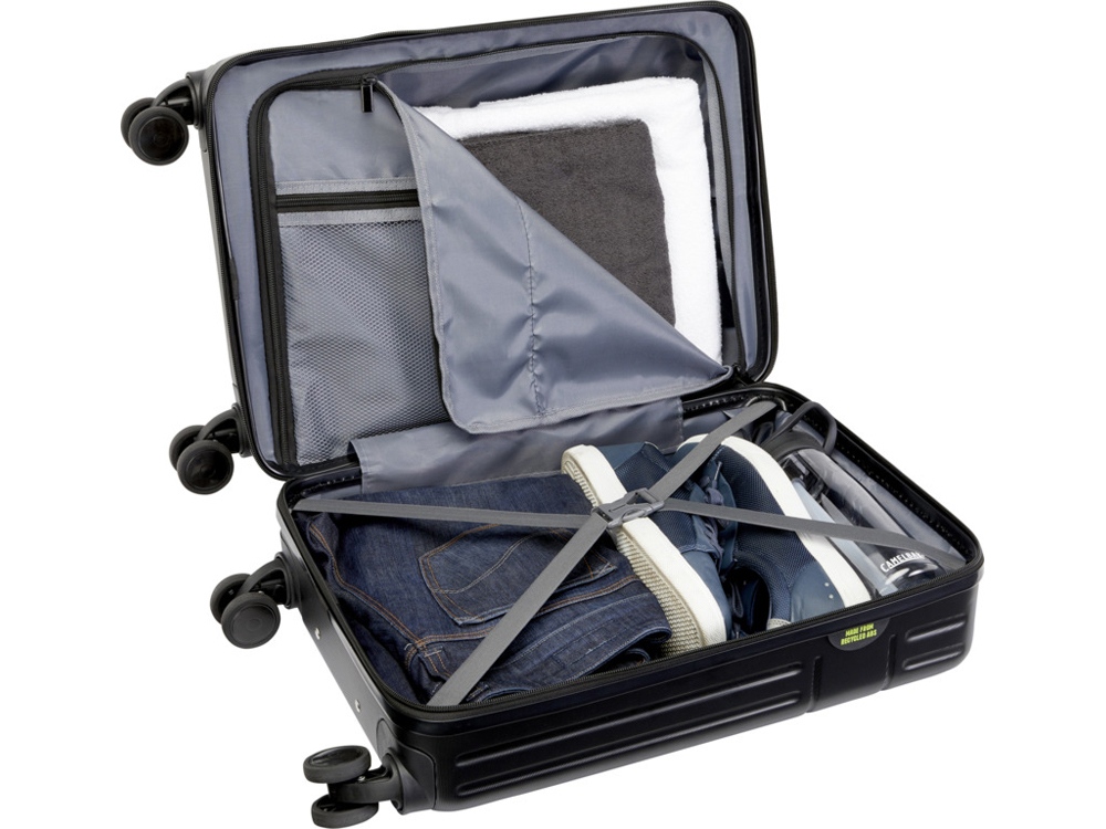 Изготовленный из ударопрочной переработанной пластмассы и облицовки из вторичного ПЭТ, 20-дюймовый чемодан для ручной клади на колесиках Rover отличается не только качеством, но и экологичностью. Он имеет двухтрубную алюминиевую раму, 4 колесика, вращающихся на 360 градусов, встроенный кодовый замок TSA, удобную ручку для переноски и внутренние отделения-органайзеры. Можно брать с собой в качестве ручной клади на рейсах большинства основных авиакомпаний. Данный чемодан на колесах сертифицирован GRS, включая печать, что делает его более экологичным выбором. GRS certified recycled ABS.