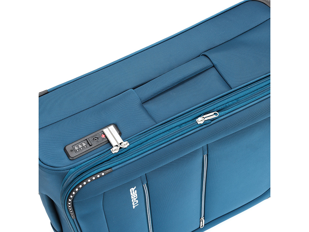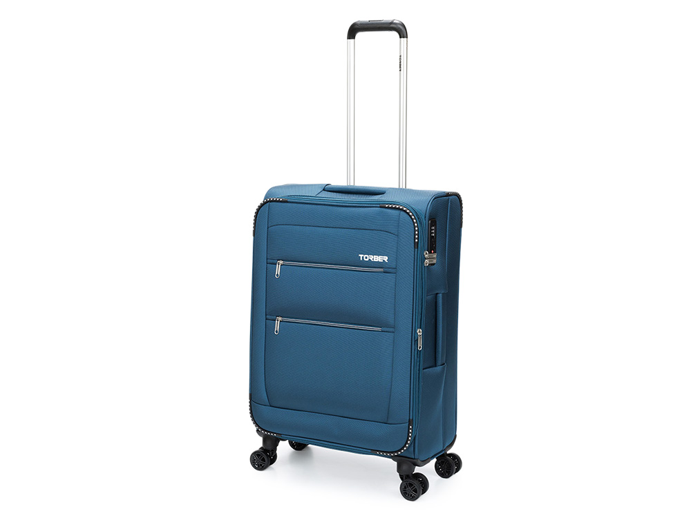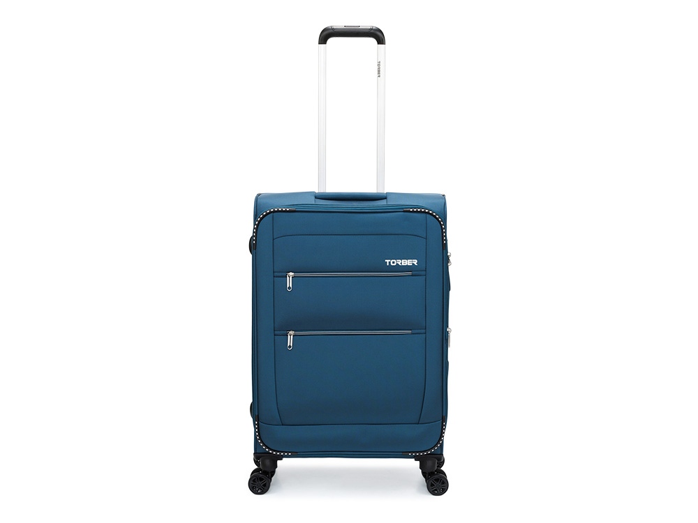 Чемодан TORBER ВИВИ, синий, полиэстер, 44 х 25 х 67 см, 63 л