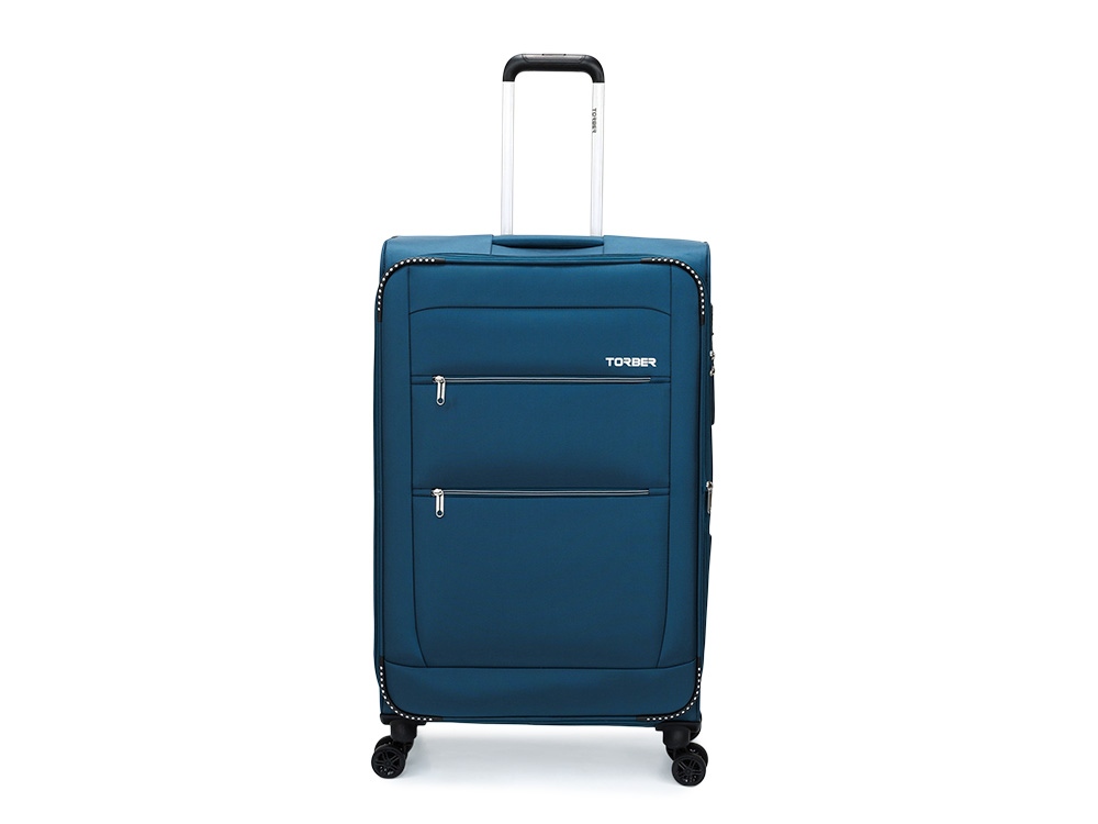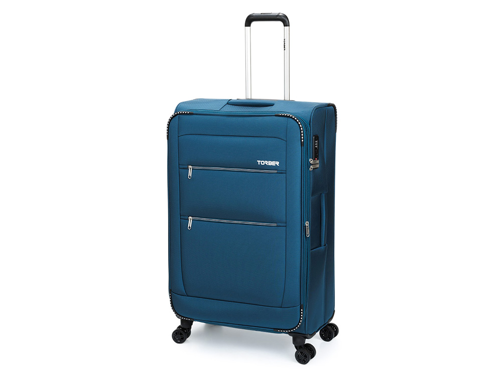 Чемодан TORBER ВИВИ, синий, полиэстер, 48 х 28 х 78 см, 89 л