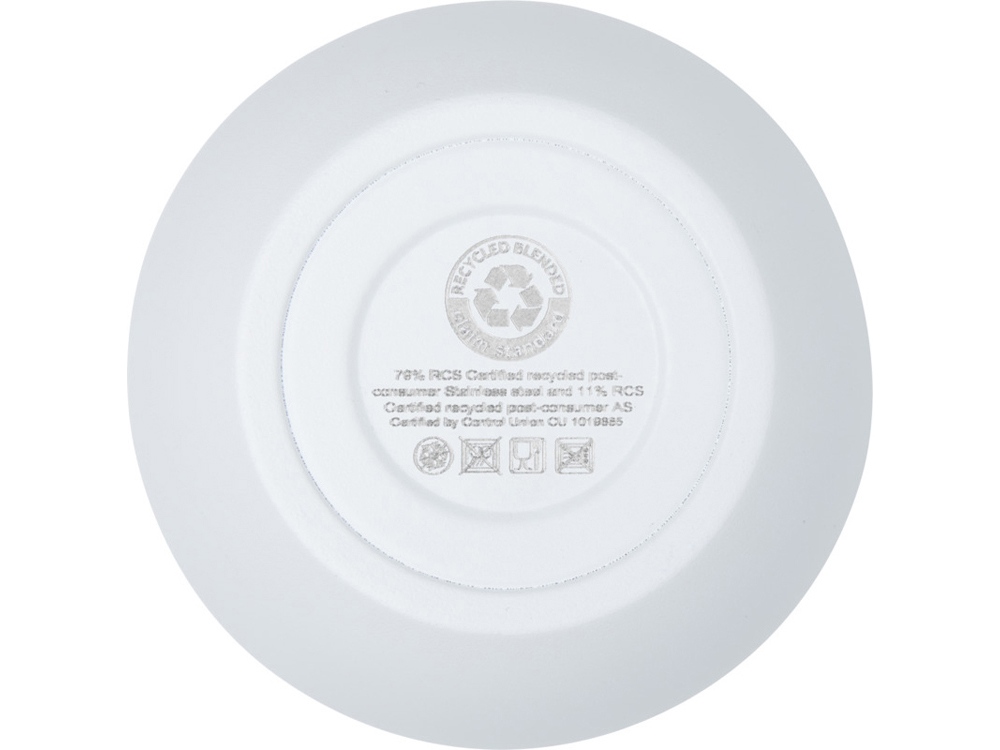 Corzo изготовлен из нержавеющей стали, сертифицированной RCS, и имеет вакуумную конструкцию с двойными стенками и медной изоляцией, которая сохраняет напитки горячими в течение 6 часов или холодными в течение 24 часов. Конструкция препятствует образованию конденсата на внешней стороне чашки. Стакан с нажимаемой крышкой прост в использовании. На наружный корпус нанесено порошковое покрытие. Широкое горлышко для комфортного наполнения и заливки. Объем 350 мл. Поставляется в подарочной коробке из переработанного картона. Recycled stainless steel.