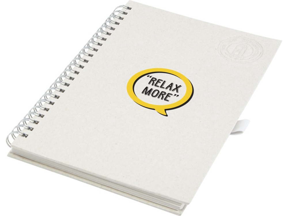 Блокнот на спирали формата A5 для заметок с 70 линованными листами плотностью 80 г/м², изготовленный из переработанных картонных коробок из-под молока (до 70%). Картонные коробки из-под молока собираются, сортируются, перерабатываются и превращаются в бумагу, таким образом действительно превращая мусор во что-то полезное.