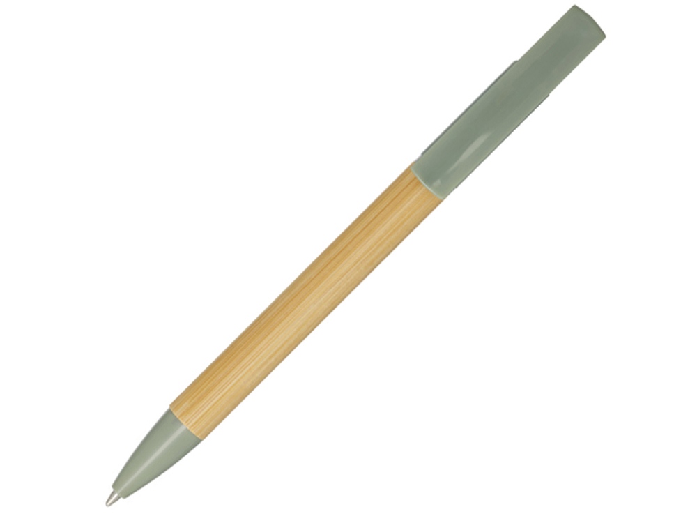 Бамбуковая шариковая ручка, которая также может служить подставкой для телефона. Кнопка и среднее кольцо изготовлены из переработанного пластика, наконечник — из латуни, а корпус — из бамбука, полученного из ответственных источников. Цвет чернил: черный. Длина непрерывной линии: 1000 метров. Размер пера: 1,0 мм. FSC certified bamboo. FSC Mix Credit N5 CU-COC-877277.