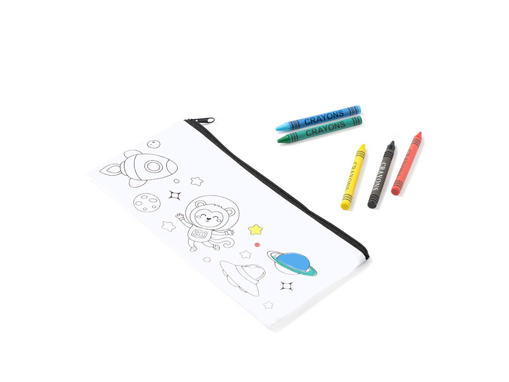 Детский пенал с рисунком-раскраской. В комплекте 5 восковых карандашей разных цветов.