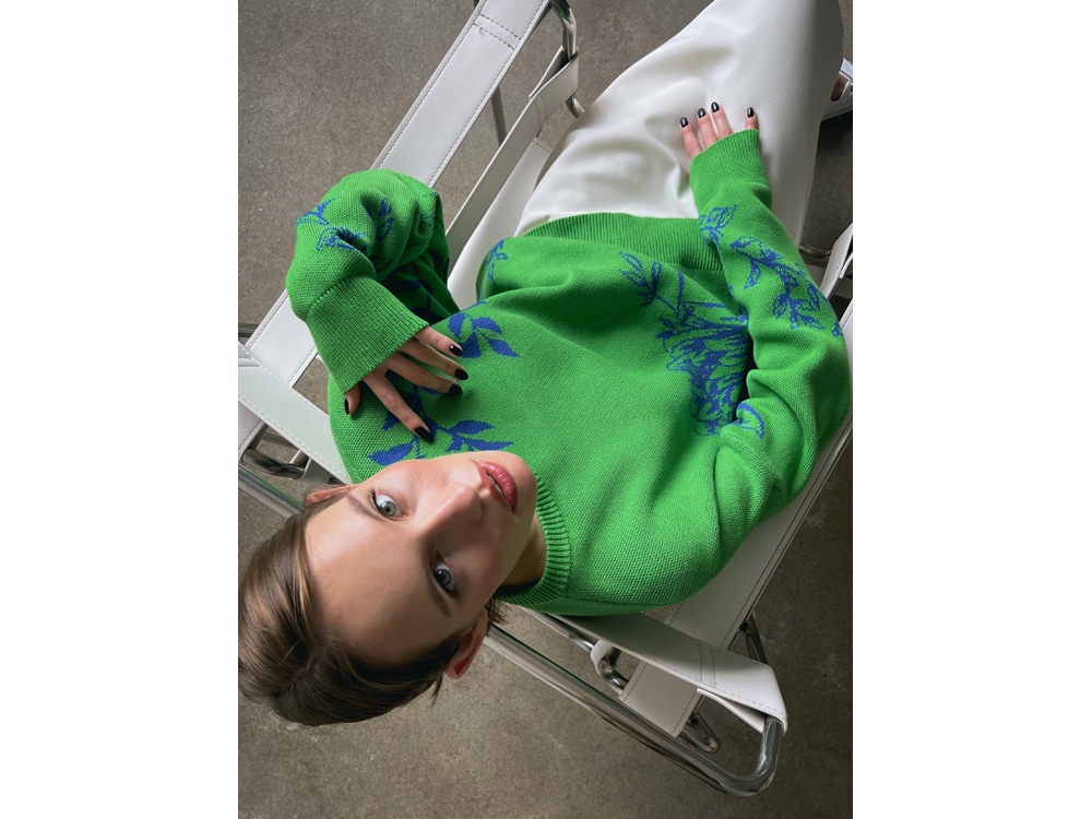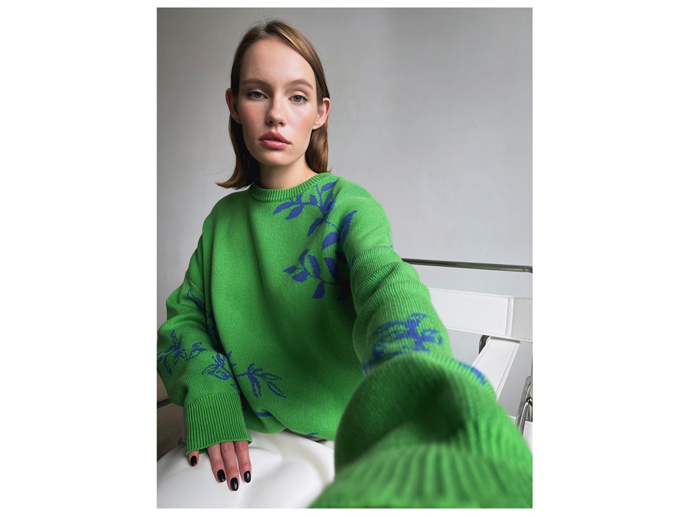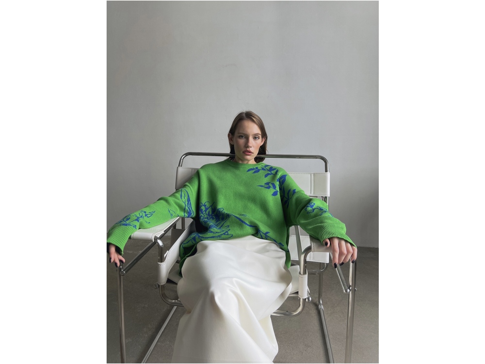 Джемпер Хризантема зеленый. Varvara купить оптом и в розницу с нанесением логотипа в Нижнем Новгороде