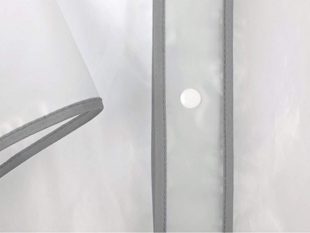 Плащ-дождевик на кнопках с капюшоном Providence Непромокаемый материал EVA - современный и лёгкий Удлиненная модель Прямой крой, втачной рукав Регулировка ширины рукава по низу при помощи кнопки Капюшон с козырьком и утягивающим шнуром Полупрозрачный с цветной окантовкой Складывается в компактную сумку-чехол на кнопках
