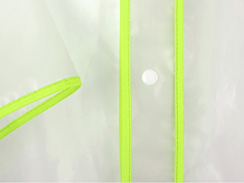Плащ-дождевик на кнопках с капюшоном Providence Непромокаемый материал EVA - современный и лёгкий Удлиненная модель Прямой крой, втачной рукав Регулировка ширины рукава по низу при помощи кнопки Капюшон с козырьком и утягивающим шнуром Полупрозрачный с цветной окантовкой Складывается в компактную сумку-чехол на кнопках