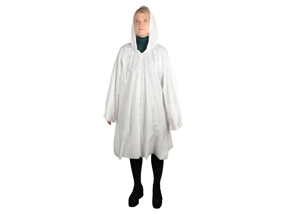 Многоразовый дождевик-плащ отлично подходит как для повседневного использования так и для масштабных мероприятий. Дождевик с длинным рукавом и капюшоном, застегивается на кнопки-липучки, выполнен из плотного полиэтилена, поставляется в прозрачном пакете с клапаном. Дождевик единого размера.