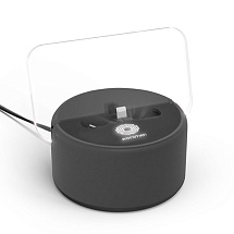 Универсальная зарядная станция 3-в-1 имеет разъемы Type-C, Lightning и Micro USB. Дополнительный USB разъем для зарядки вашим собственным кабелем или для передачи данных (например, чтобы считать флеш-карту). Черная акриловая поверхность подсвечивается во время зарядки и отключается, когда зарядка окончена. Дизайн украшен яркой подсветкой лого и съемными силиконовыми кольцами.