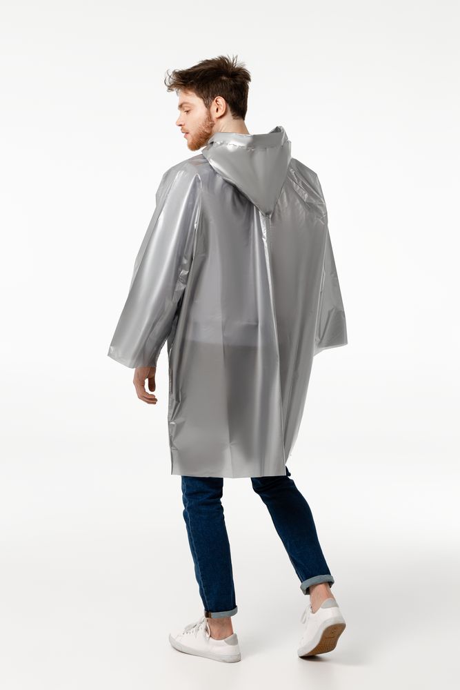 Дождевик-плащ CloudTime, серебристый купить оптом и в розницу с нанесением логотипа в Нижнем Новгороде