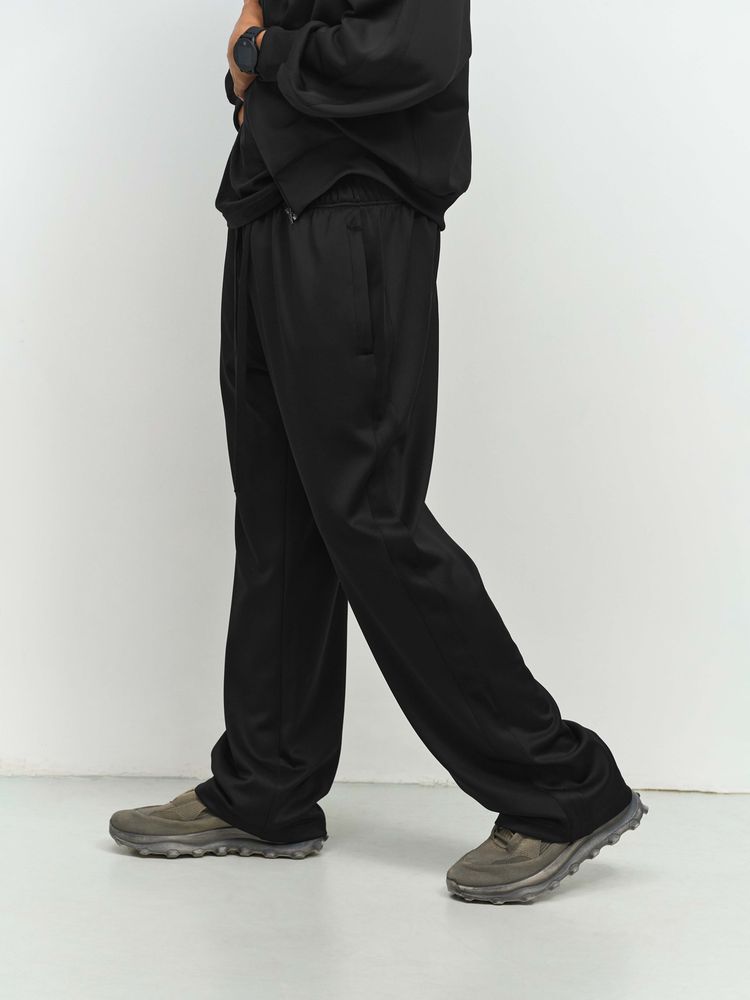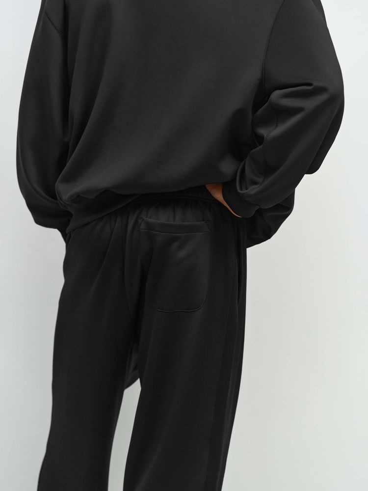 Джоггеры унисекс свободного прямого кроя Arto выполнены из высокотехнологичного трехслойного материала, известного как ткань скуба или трикотажный неопрен, в самом центре которого спрятаны объемные нити текстурированного полиэстера.