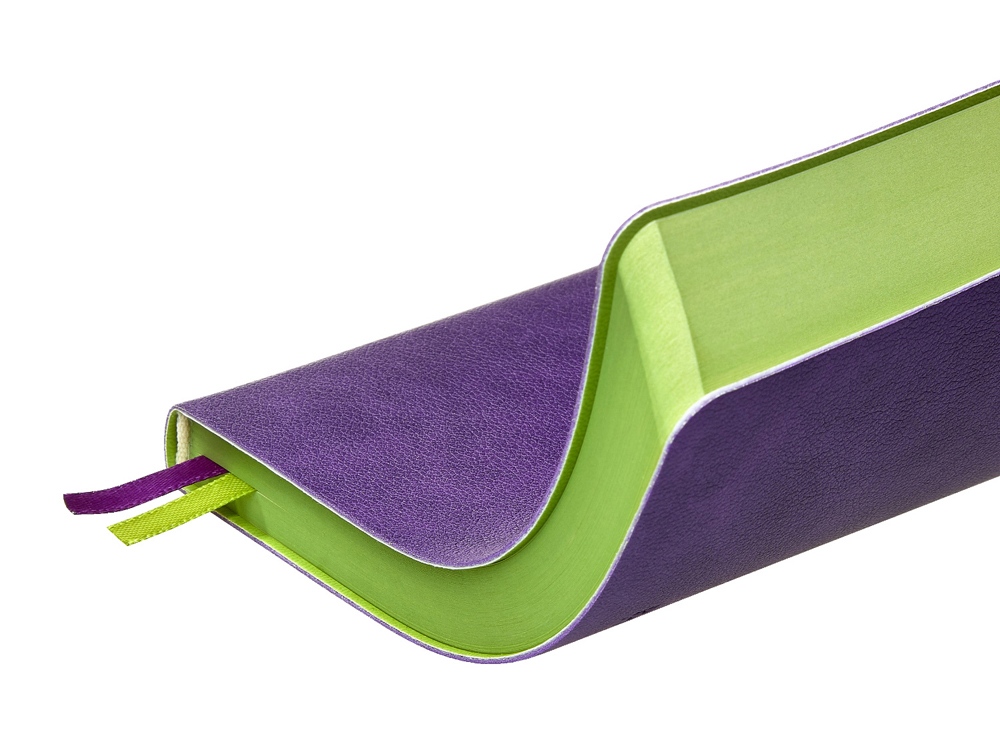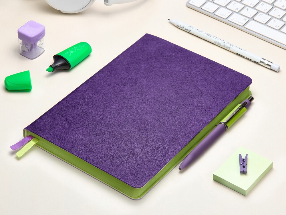 Ежедневник А5 датированный Boston 2026, фиолетовый с салатовым обрезом