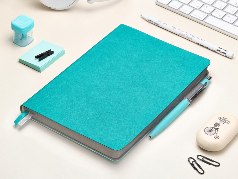 Ежедневник А5 датированный Boston 2026, морская волна с серым обрезом