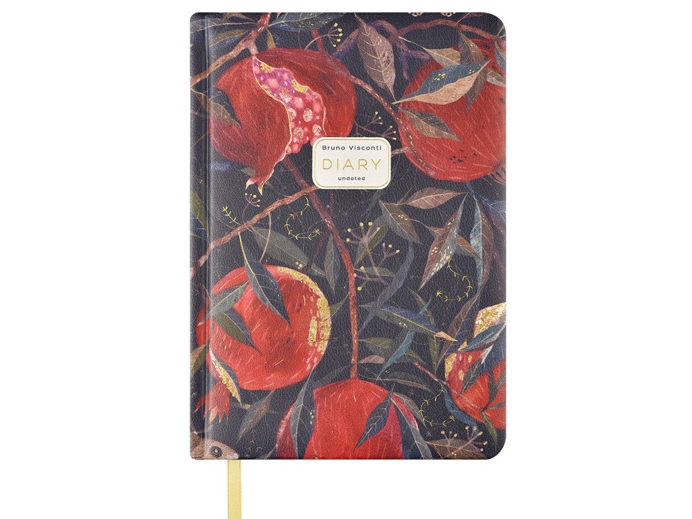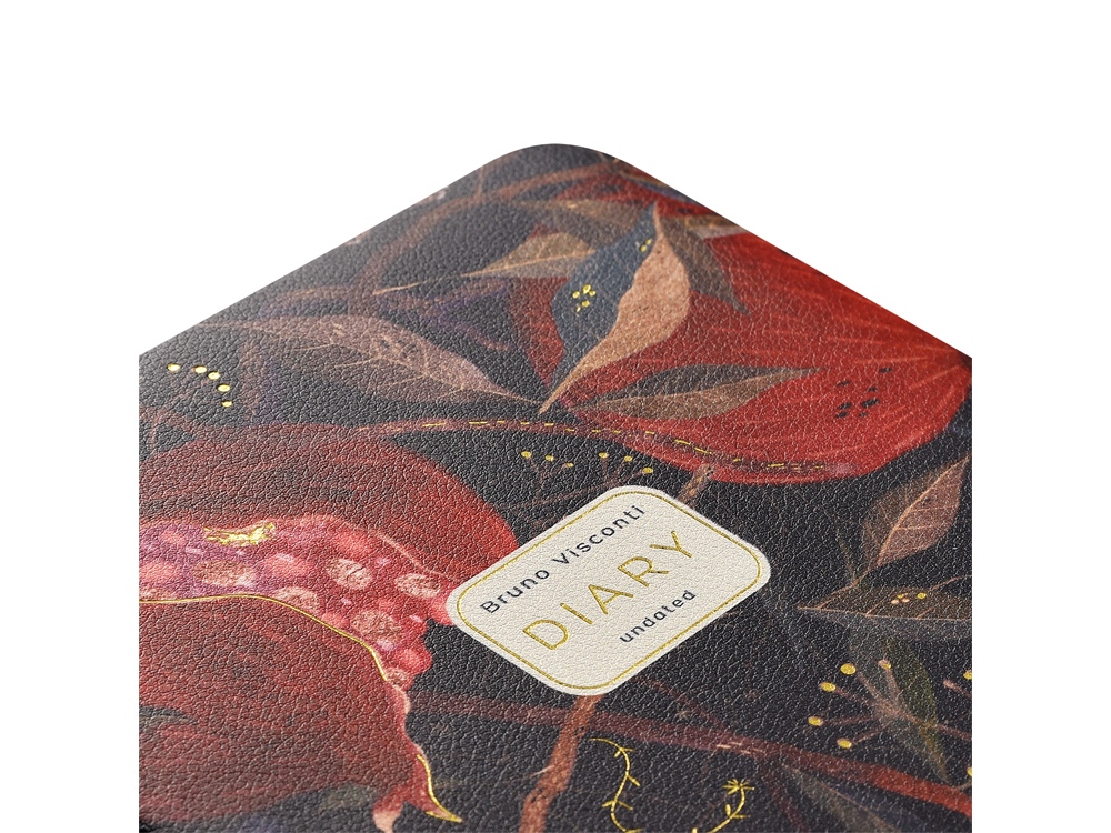 Недатированный ежедневник Гранат формата А5+ от Bruno Visconti для планирования рабочего времени, ведения записей. Твердая обложка ежедневника изготовлена из искусственной фактурной кожи. Ее яркий дизайн, созданный в коллаборации с художницей Кариной Кино, дополнен тиснением золотой фольгой в сочетании с цветным обрезом привлекает внимание, придает ежедневнику особую статусность. Внутренний блок изготовлен из бежевой бумаги плотностью 70 г/кв.м и содержит 120 листов в линейку. Для быстрой навигации предусмотрено желтое ляссе шириной 7 мм – легко можно найти нужную страницу. Ежедневник Гранат - идеальное решение для динамичных деловых людей, которым важны мобильность, качество, комфорт, а также для креативных людей, стремящихся подчеркнуть свою индивидуальность яркими деловыми аксессуарами.