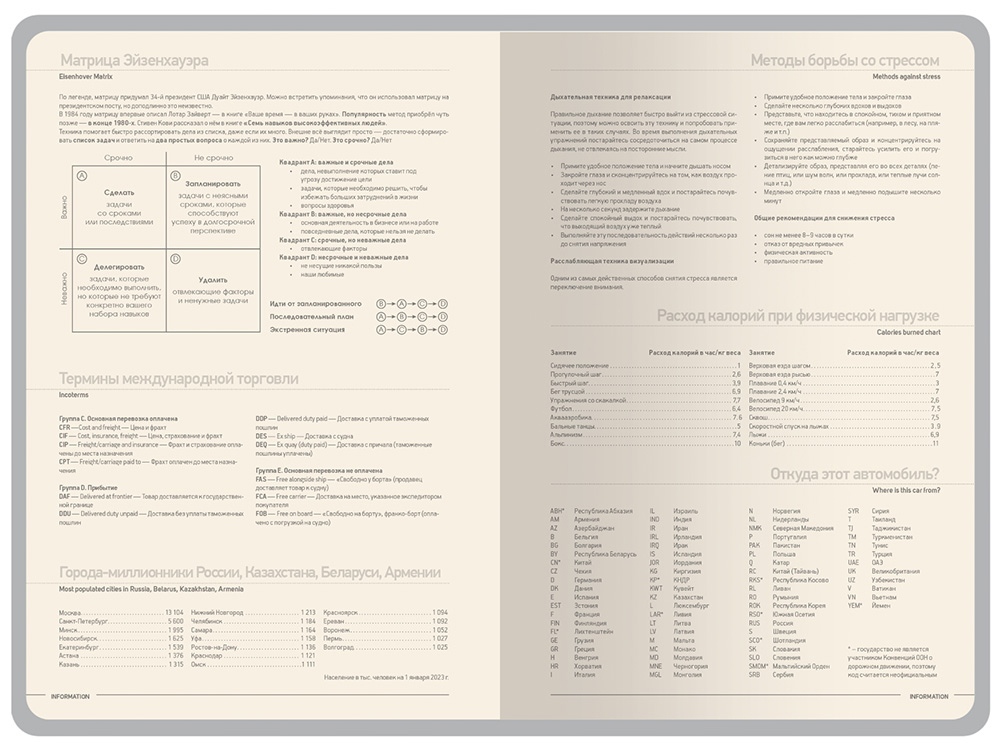 Стильный и современный, практичный и удобный, недатированный ежедневник Megapolis Color от Bruno Visconti для планирования рабочего времени и ведения деловых записей. Обложка изготовлена из искусственной кожи с Soft Touch покрытием. Обрез выполнен в цвет обложки ежедневника. Блок состоит из 272 страниц бежевой бумаги плотностью 70 г/кв.м. Для удобства навигации предусмотрена закладка-ляссе шириной 7 мм в цвет обложки. Недатированные страницы в серую линейку имеют отдельное место для проставления числа месяца и дня недели. Справочный блок на 17 страницах содержит полезную информацию из различных областей. Ежедневник выпускается в формате А5.