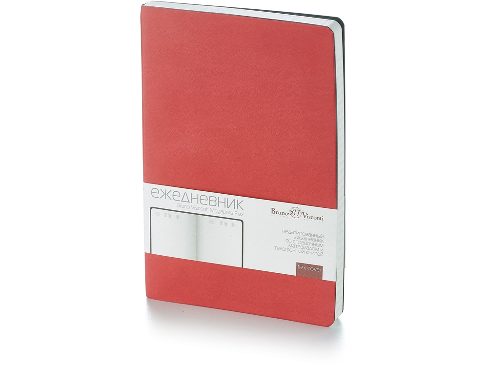 Недатированный ежедневник Megapolis Flex от бренда Bruno Visconti - это качественный корпоративный подарок по выгодной цене, произведенный специально под персонализацию. Представлен в универсальном формате А5 и состоит из 272 страниц. Элегантная закругленная flex обложка из гладкого кожзама имеет гибкую конструкцию и приятна на ощупь. А интегральный переплет позволяет сэкономить место в деловой сумке или портфеле – ежедневник можно просто свернуть в трубку или согнуть пополам. В ежедневнике Megapolis Flex есть полезная справочная информация и телефонная книга, а также страницы для записи идей, мыслей и составления рабочих планов. Для изготовления страниц используется качественный бежевый офсет повышенной плотности (70 г/кв м). Блок не привязан к конкретным датам – они указываются в выделенном поле вверху страницы. Тонированная бумага не дает глазам утомиться даже при длительной работе. Все ежедневники от бренда Bruno Visconti можно персонализировать с помощью тиснения обложки - золотой или серебряной фольгой. Наши ежедневники помогут быть успешным и эффективным в карьере и повседневной жизни!