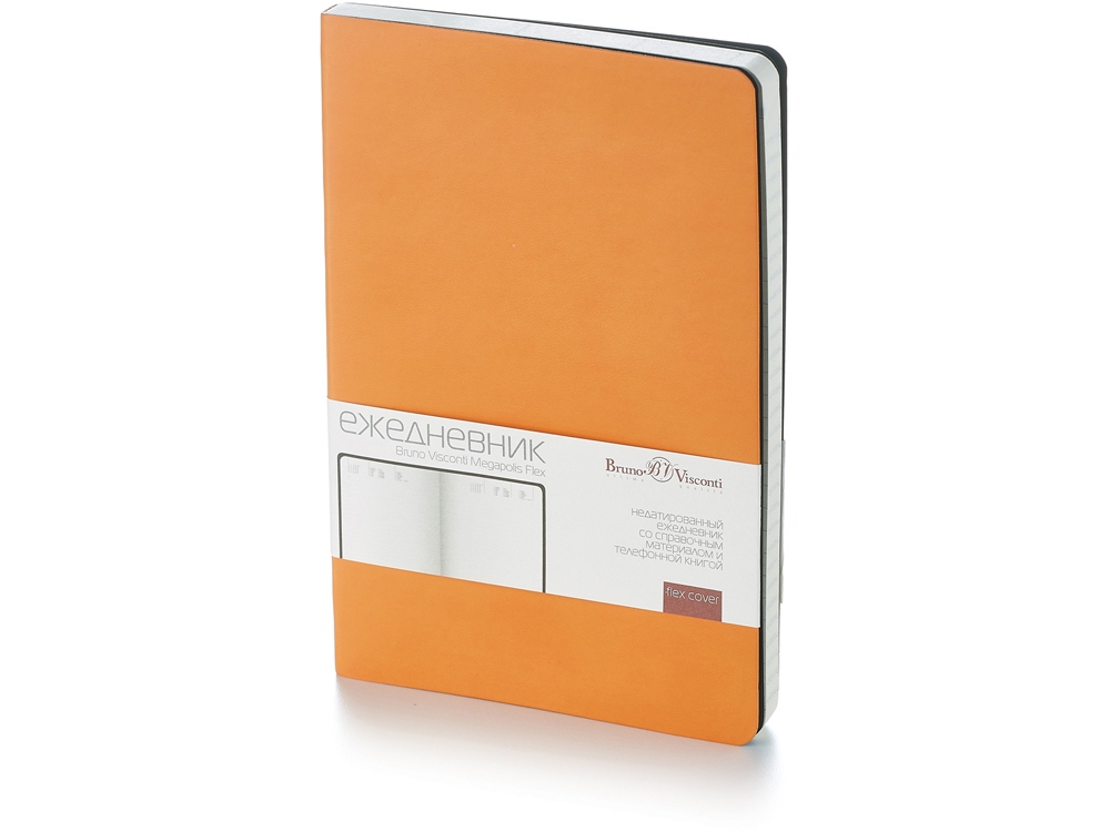 Недатированный ежедневник Megapolis Flex от бренда Bruno Visconti - это качественный корпоративный подарок по выгодной цене, произведенный специально под персонализацию. Представлен в универсальном формате А5 и состоит из 272 страниц. Элегантная закругленная flex обложка из гладкого кожзама имеет гибкую конструкцию и приятна на ощупь. А интегральный переплет позволяет сэкономить место в деловой сумке или портфеле – ежедневник можно просто свернуть в трубку или согнуть пополам. В ежедневнике Megapolis Flex есть полезная справочная информация и телефонная книга, а также страницы для записи идей, мыслей и составления рабочих планов. Для изготовления страниц используется качественный бежевый офсет повышенной плотности (70 г/кв м). Блок не привязан к конкретным датам – они указываются в выделенном поле вверху страницы. Тонированная бумага не дает глазам утомиться даже при длительной работе. Все ежедневники от бренда Bruno Visconti можно персонализировать с помощью тиснения обложки - золотой или серебряной фольгой. Наши ежедневники помогут быть успешным и эффективным в карьере и повседневной жизни!