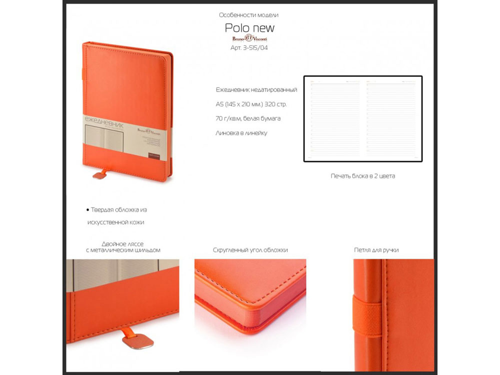 Ежедневник А5 Polo от бренда Bruno Visconti - это качественный и недорогой корпоративный подарок, произведенный специально под персонализацию. Представлен в универсальном формате А5. Обложка выполнена из переплетного материала с фактурой кожи. Современный образ собран из деталей цветовых оттенков: тонированного обреза, двойного ляссе с шильдиком и декоративного корешка, отстроченного от серой части переплета. Закрепленная на корешке фиксирующая резинка из эластичного материала позволяет всегда держать под рукой карандаш и ручку. Все эти части обложки выделены при помощи аккуратной прострочкой. В ежедневнике Polo есть полезная справочная информация, а также 320 страниц для записи идей, мыслей и составления рабочих планов. Для изготовления страниц используется качественный бежевый офсет повышенной плотности (70 г/кв м). Ежедневники от бренда Bruno Visconti можно персонализировать с помощью всех видов тиснения обложки. Наши ежедневники помогут быть успешным и эффективным в карьере и повседневной жизни!