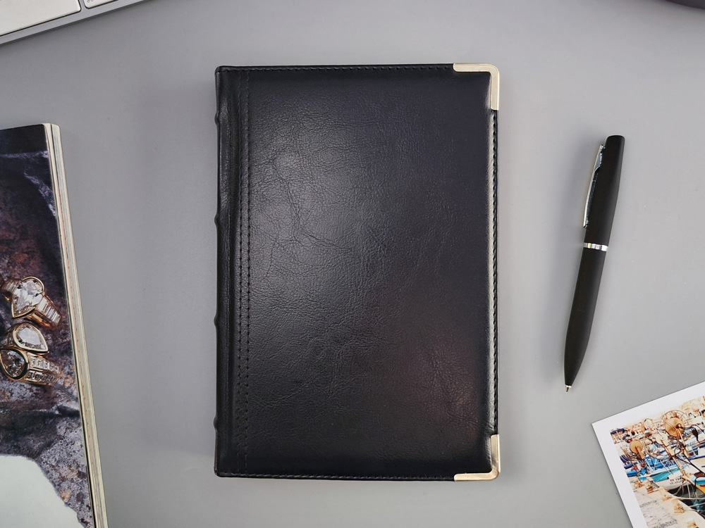Полудатированный ежедневник Boss от бренда Bruno Visconti - это качественный корпоративный подарок по выгодной цене, произведенный специально под персонализацию. Представлен в универсальном формате А5 и состоит из 416 страниц. Классический деловой ежедневник линии Boss – образец элегантности. Гладкую тонкую фактуру экокожи подчеркивает декоративная строчка по контуру и металлические закругленные уголки золотистого цвета. В ежедневнике есть полезная справочная информация и телефонная книга, а также страницы для записи идей, мыслей и составления рабочих планов. Есть перфорация (нижние уголки отрывные). Для изготовления страниц используется качественный бежевый офсет повышенной плотности (80 г/кв м), которая производится японской фирмой Daiwa и подходит для всех видов чернил. Ежедневник можно персонализировать с помощью тиснения обложки - золотой или серебряной фольгой. Наши ежедневники помогут быть успешным и эффективным в карьере и повседневной жизни!