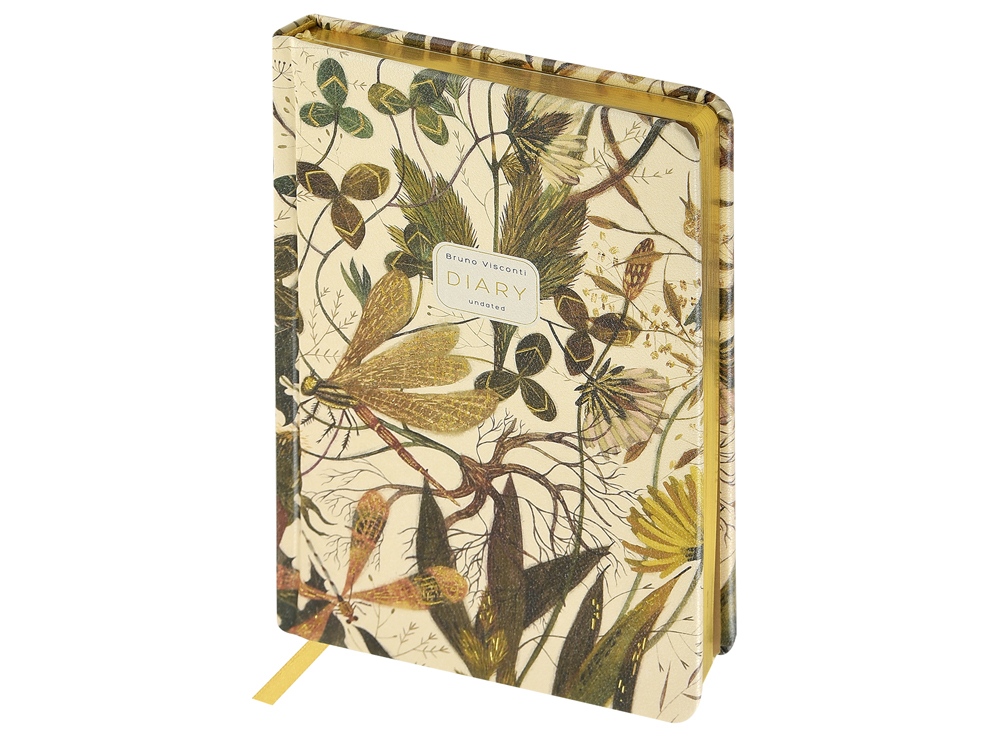 Недатированный ежедневник Summer Greens формата А5+ от Bruno Visconti для планирования рабочего времени, ведения записей. Твердая обложка ежедневника изготовлена из искусственной фактурной кожи. Ее яркий дизайн, созданный в коллаборации с художницей Кариной Кино, дополнен тиснением золотой фольгой в сочетании с цветным обрезом привлекает внимание, придает ежедневнику особую статусность. Внутренний блок изготовлен из бежевой бумаги плотностью 70 г/кв.м и содержит 120 листов в линейку. Для быстрой навигации предусмотрено желтое ляссе в цвет обложки шириной 7 мм – легко можно найти нужную страницу. Ежедневник Summer Greens - идеальное решение для динамичных деловых людей, которым важны мобильность, качество, комфорт, а также для креативных людей, стремящихся подчеркнуть свою индивидуальность яркими деловыми аксессуарами.