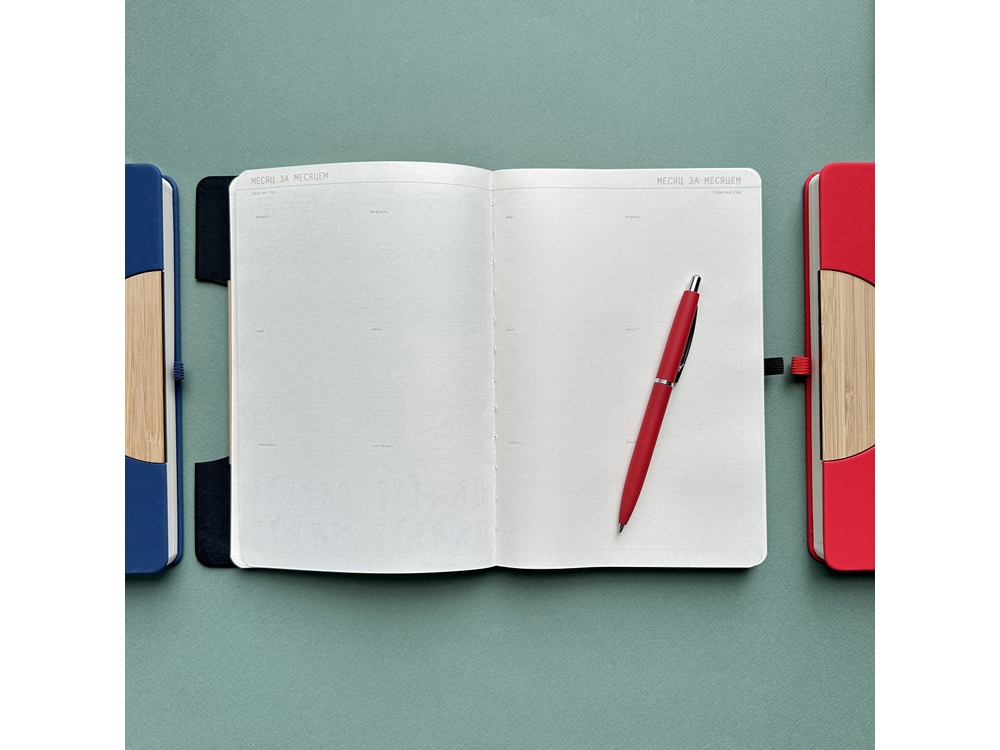Недатированный ежедневник Bosforo формата А5 от Bruno Visconti - оригинальный по дизайну, удобный и функциональный в эксплуатации. Обложка, выполненная из экокожи с покрытием Soft Touch, создает приятные тактильные ощущения при соприкосновении с ежедневником. Украшает обложку деревянный элемент и вырубка в форме полукруга. Ну, а вишенка на торте – мягкая линия сгиба в центре обложки, позволяющая использовать ежедневник в качестве подставки под телефон. А маленькая петля из резинки – отличное решение для фиксации шариковой ручки, она всегда будет под рукой. Есть еще одна удобная деталь ежедневника - ляссе в цвет обложки для быстрой навигации. Бумажный блок, закрепленный книжным переплетом, выполнен из бежевой офсетной бумаги плотностью 70 г/кв.м и содержит 272 страницы, из которых 17 страниц - справочная информация, а 19 страниц телефонная книга.