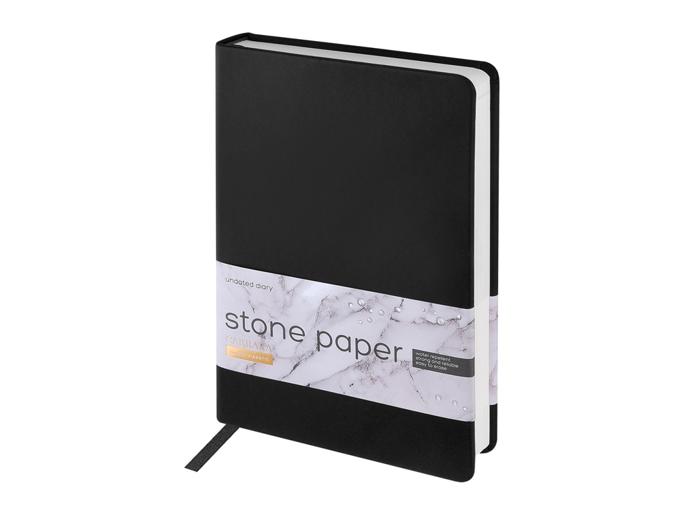 Ежедневник с каменной бумагой недатированный А5 Carrara, черный купить оптом и в розницу с нанесением логотипа в Нижнем Новгороде