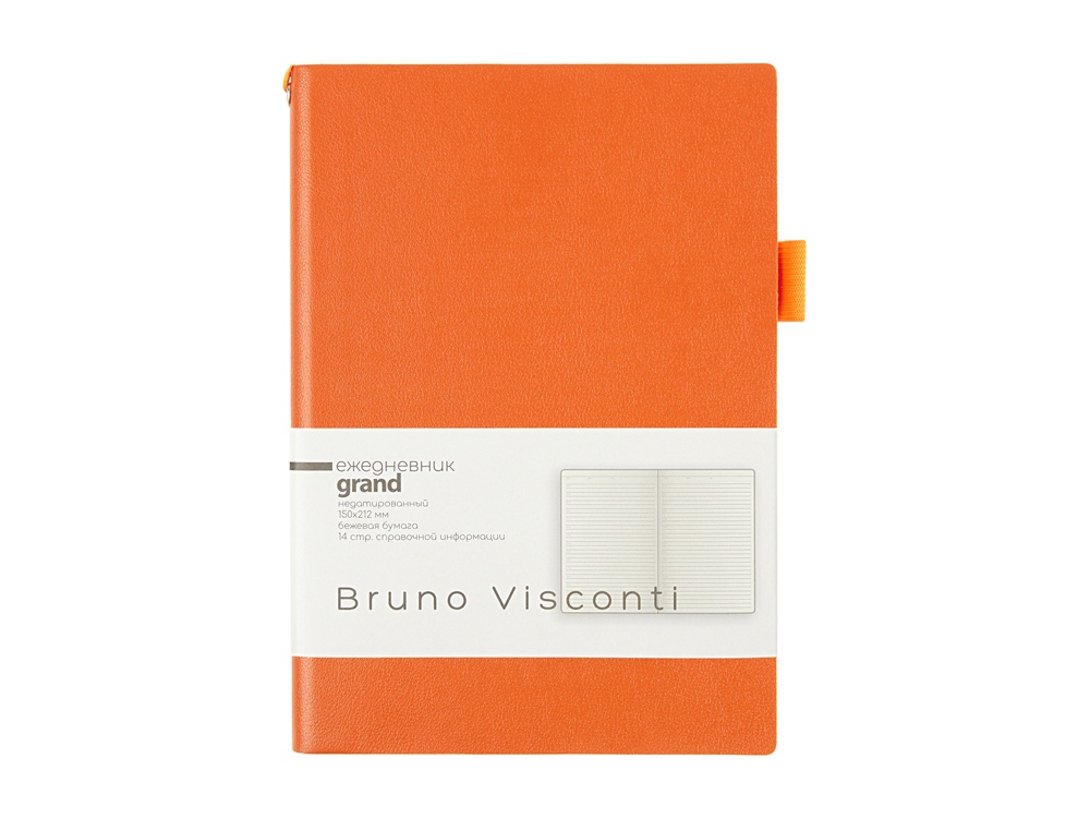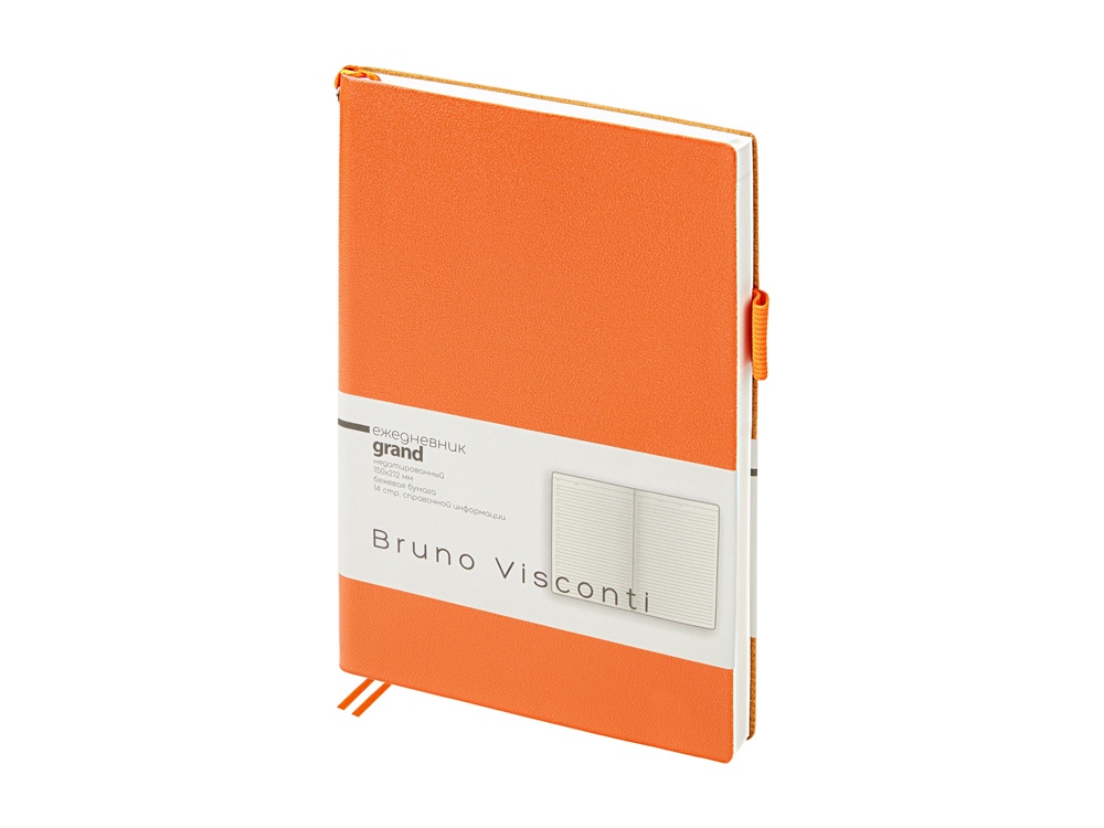 Мягкая, гибкая обложка с необычной фактурой, приятной на ощупь, петля под ручку, двойное ляссе, стандартный формат А5 — все это ежедневник Grand. А благодаря оригинальному способу фиксации ляссе на корешке ежедневник получил новое звучание. Такая фишка придется по вкусу всем, кто придает большое значение деталям. Недатированный блок изготовлен из бежевой бумаги плотностью 80 г/кв.м. Ежедневник имеет справочную информацию на 14 страницах.