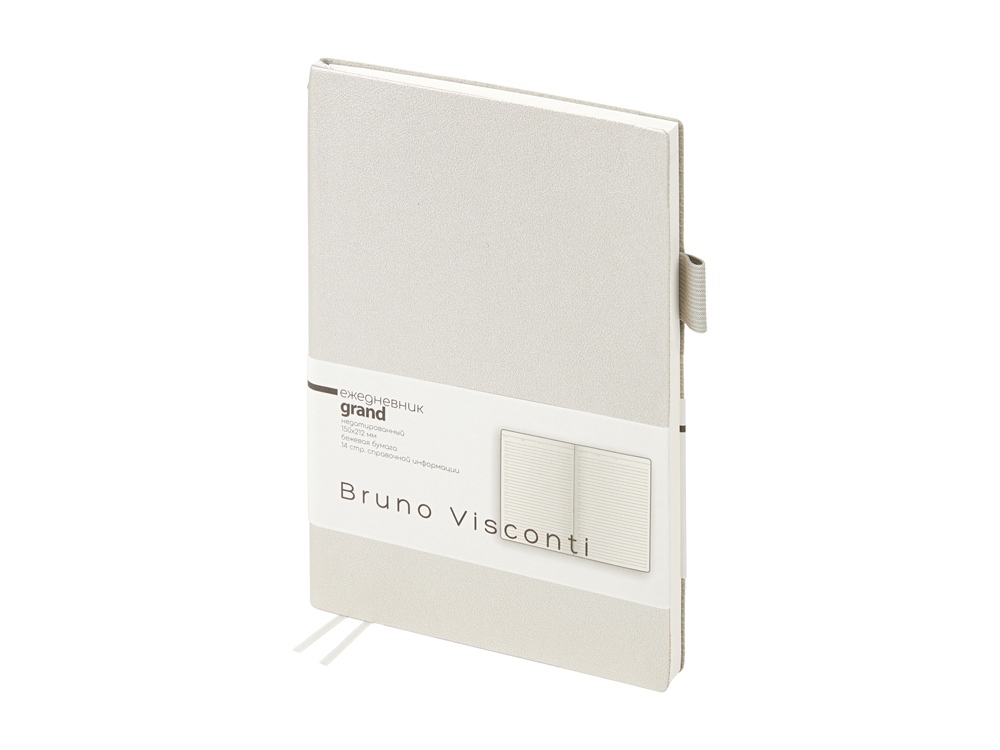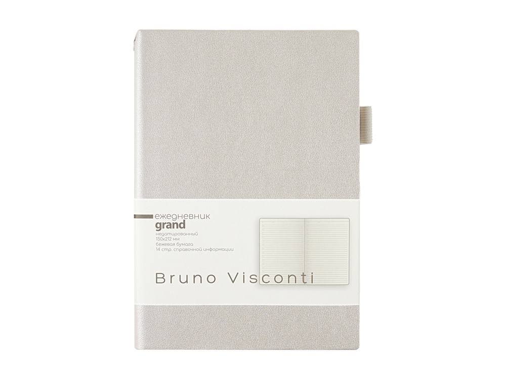 Мягкая, гибкая обложка с необычной фактурой, приятной на ощупь, петля под ручку, двойное ляссе, стандартный формат А5 — все это ежедневник Grand. А благодаря оригинальному способу фиксации ляссе на корешке ежедневник получил новое звучание. Такая фишка придется по вкусу всем, кто придает большое значение деталям. Недатированный блок изготовлен из бежевой бумаги плотностью 80 г/кв.м. Ежедневник имеет справочную информацию на 14 страницах.