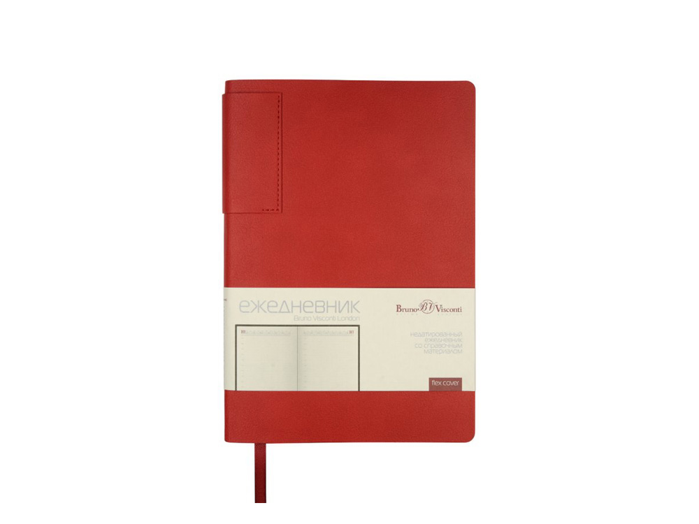 Классический ежедневник из коллекции London формата А5, недатированный. Лаконичная модель в ярком исполнении: гибкая обложка красного цвета с контрастной или в цвет обложки нашивкой. Выполнен из качественной и прочной искусственной кожи, крепление внутреннего блока - книжный переплет, закладка- ляссе. Углы обложки скруглены. Внутри есть страница для личных данных, а также блок справочной информации (часовые пояса, аэропорты, телефонные коды, размеры одежды, автомобильные коды, римские цифры, расход калорий, формат бумаги, единицы измерения, штрихкоды, распад алкоголя в крови, города миллионники РФ и СНГ, национальные праздники, термины международной торговли, температура, скорость, давление, буквенные коды стран, энергетическая ценность продуктов, страны мира).