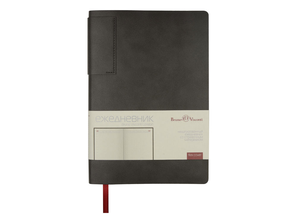 Классический ежедневник из коллекции London формата А5, недатированный. Лаконичная модель в ярком исполнении: гибкая обложка серого цвета с контрастной или в цвет обложки нашивкой. Выполнен из качественной и прочной искусственной кожи, крепление внутреннего блока - книжный переплет, закладка- ляссе. Углы обложки скруглены. Внутри есть страница для личных данных, а также блок справочной информации (часовые пояса, аэропорты, телефонные коды, размеры одежды, автомобильные коды, римские цифры, расход калорий, формат бумаги, единицы измерения, штрихкоды, распад алкоголя в крови, города миллионники РФ и СНГ, национальные праздники, термины международной торговли, температура, скорость, давление, буквенные коды стран, энергетическая ценность продуктов, страны мира).
