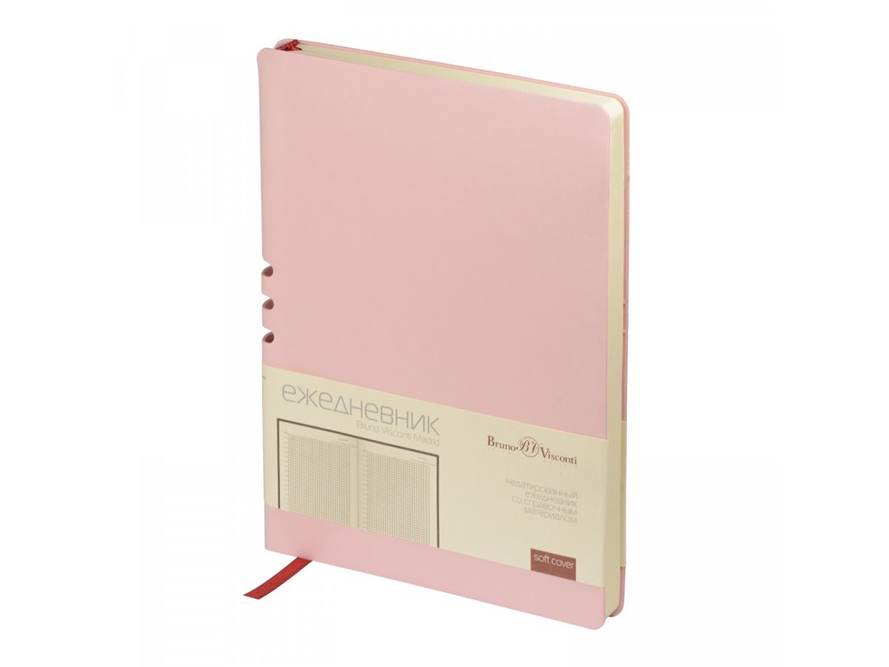 Этот ежедневник вдохновлен солнечными днями и томными ночами Мадрида. И как этот великий город он лишь намекает снаружи на свои тайны. Так, вырубка на спинке – это удобная петля для ручки. Пользоваться этим секретом – одно удовольствие. Недатированный ежедневник Madrid от Bruno Visconti исполнен в модном зефирном мятном цвете. Гибкая обложка с покрытием Soft-Touch. Бордовое ляссе выгодно прекрасно сочетается со скругленной обложкой и бежевым блоком. Для изготовления данного ежедневника использована бумага плотность 70 г/м. Справочная информация на 17 страницах. Ежедневник упакован в картонный полукороб и термопленку.