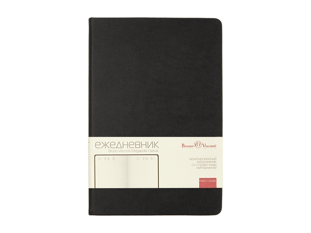 Недатированный ежедневник Megapolis Classic формата А5 от Bruno Visconti в твердой обложке из высококачественной экокожи - идеальный помощник в деле планирования рабочего времени для тех, кто ценит рационализм и функциональность. Внутренний блок состоит из 192 страниц бежевой бумаги плотностью 70 г/кв.м. и имеет блок классической справочной информации на 12 страниц.