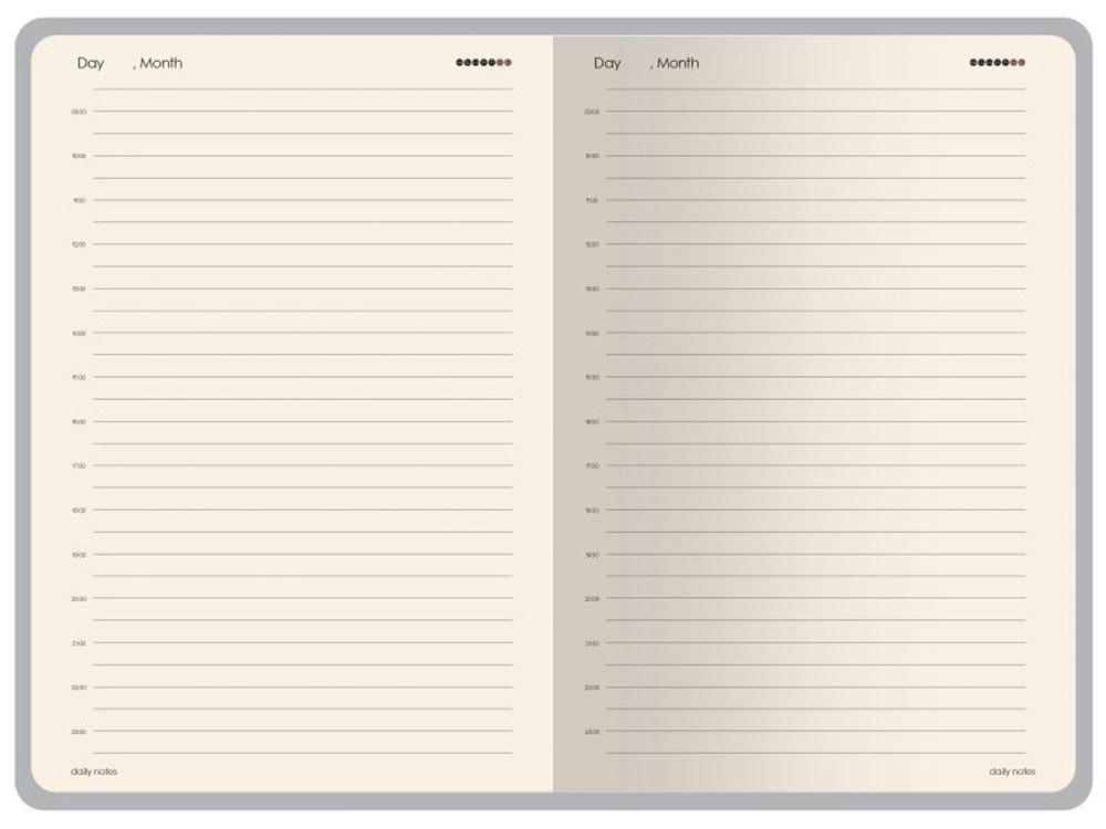 Недатированный ежедневник Bruno Visconti Palermo формата А5 с гибкой (flex) обложкой – практичный помощник в деле планирования рабочего времени для деловых людей, живущих в ритме мегаполиса. Отличительной особенностью ежедневника является горизонтальная, скрепляющая обложку и блок, тоненькая резинка. Оригинальное решение позволяет раскрывать ежедневник на 180 градусов и вести записи у самого края корешка. Для фиксации второй резинки, не позволяющей ежедневнику раскрываться, предусмотрена выемка на обложке. Обложка тонка, но фактурность придает ей элемент брутальности, а бархатистое нанесение на ее оборотной стороне- благородство и статусность. Картонный карман для визиток, записок, бумаг – функциональная деталь и приятная дополнительная опция. Бумажный блок изготовлен из бумаги бежевого цвета, плотностью 70 г/кв.м и содержит 272 страницы, 23 из которых справочная информация.