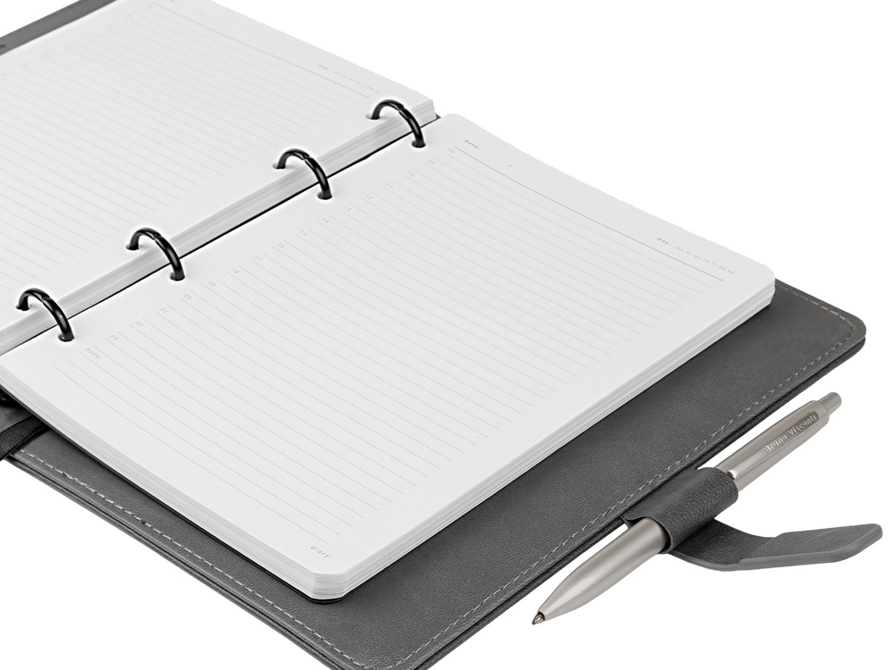 Недатированный ежедневник Toscana от Bruno Visconti на кольцах в твердом переплете – элегантный деловой аксессуар, подчеркивающий статус владельца с продуманным до мелочей функционалом: поролонированная обложка из высококачественной экокожи с декоративной нитью по периметру в тон ежедневника; бархатистая отделка, вырубка под пластиковые карты и визитки на внутренней стороне обложки; магнитный хлястик и петля для ручки; скругленные углы блока и обложки; ляссе с шильдиком для удобства навигации. Внутренний блок изготовлен из бумаги бежевого цвета и плотностью 70 г/кв.м и содержит 272 страницы, в т.ч. страницу для персональных данных, 17 страниц справочной информации.