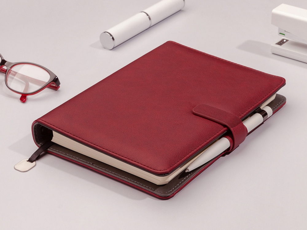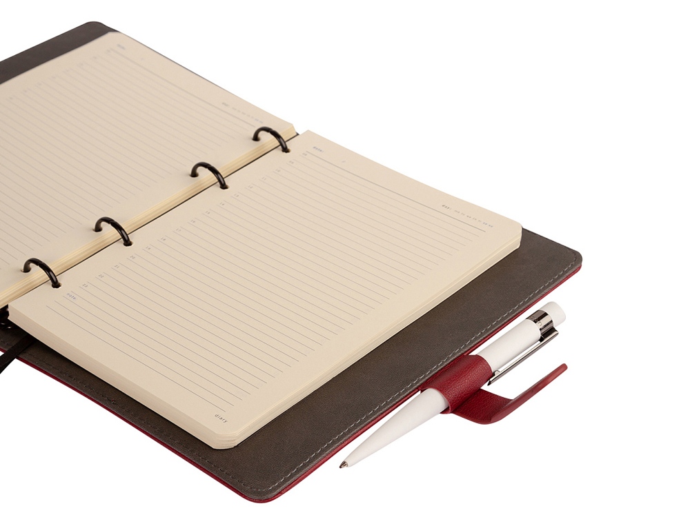 Недатированный ежедневник Toscana от Bruno Visconti на кольцах в твердом переплете – элегантный деловой аксессуар, подчеркивающий статус владельца с продуманным до мелочей функционалом: поролонированная обложка из высококачественной экокожи с декоративной нитью по периметру в тон ежедневника; бархатистая отделка, вырубка под пластиковые карты и визитки на внутренней стороне обложки; магнитный хлястик и петля для ручки; скругленные углы блока и обложки; ляссе с шильдиком для удобства навигации. Внутренний блок изготовлен из бумаги бежевого цвета и плотностью 70 г/кв.м и содержит 272 страницы, в т.ч. страницу для персональных данных, 17 страниц справочной информации.