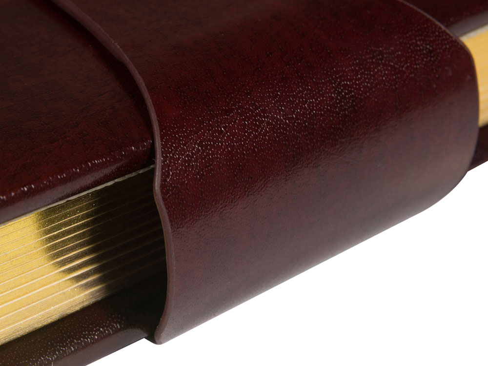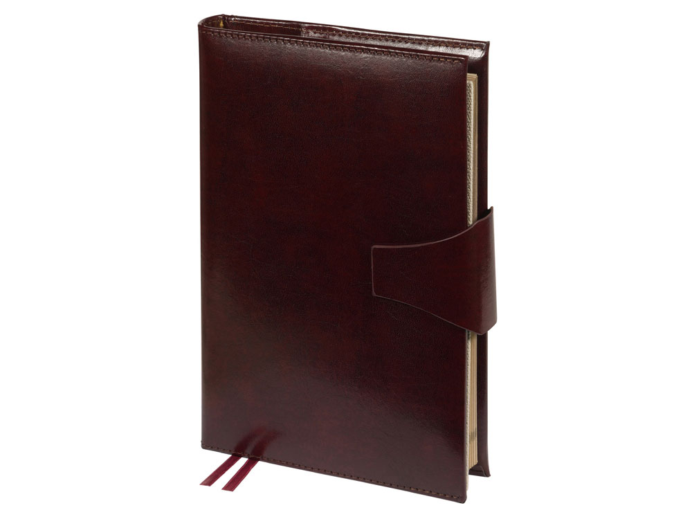 Полудатированный ежедневник Windsor от Bruno Visconti формата А5 в твердом переплете для самых взыскательных деловых людей, отдающих предпочтение элегантной классике. Респектабельность, статусность и благородство придают ежедневнику: • строгая обложка с декоративной строчкой по контуру, выполненная из рециклированной гладкой кожи; • магнитный хлястик изящной формы; • вырубка под пластиковые карты, визитки с внутренней стороны обложки; • золотой срез, контрастирующий с цветом обложки; • две бордовые закладки-ляссе для навигации; • удобно организованный полудатированный блок из бежевой бумаги плотностью 70 г/кв.м, с линовкой серого цвета; • портфолио; Ежедневник содержит 416 страниц, в т.ч. страницу для персональных данных, 19 страниц справочной информации. Для удобства последние 8 листов имеют перфорированную линию отрыва.