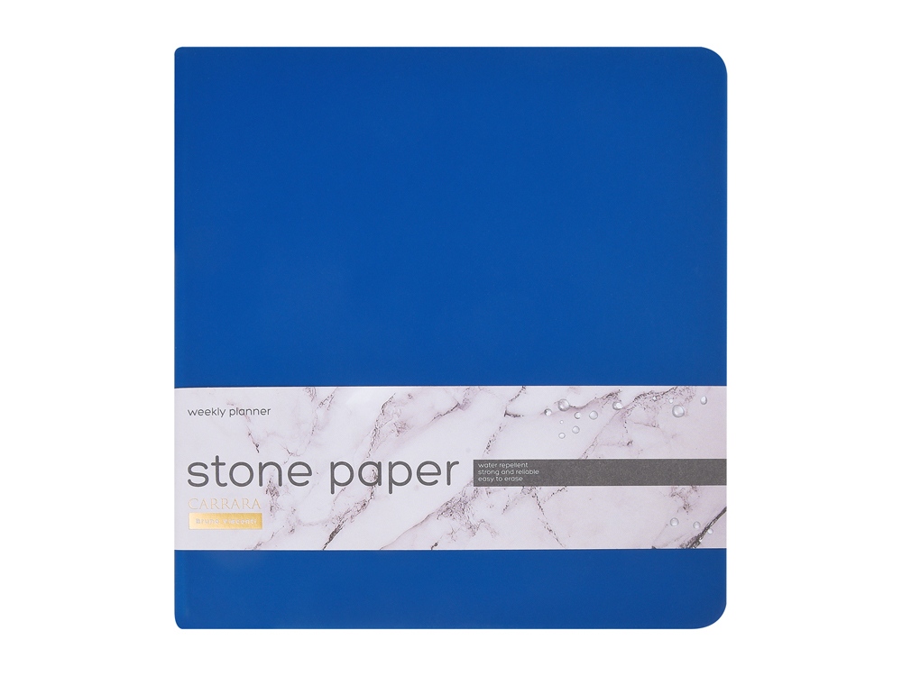 Недатированный еженедельник Carrara ТМ Bruno Visconti во всем уникален. Блок произведен из каменной бумаги плотностью 144 г/кв.м, отличающейся особой гладкостью и повышенной прочностью. Она не боится воды и пролитого кофе, достаточно просто протереть сухой салфеткой. Специально разработанная сетка блока, включает в себя и планер на год, и трендовую справочную информацию, и помесячный развернутый план, и основной блок из плана на неделю. Удобный для еженедельника квадратный формат А5+, обложка из искусственной кожи Soft Touch, блок из каменной бумаги — превосходное предложение!