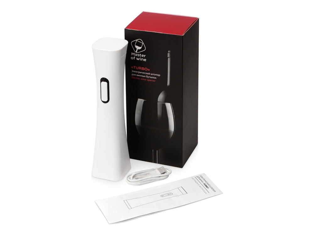 Потрясающе полезный и впечатляющий подарок ценителям вин - электрический штопор Turbo. С ним всегда легко и просто! Всего 7 секунд и пару нажатий - и бутылка вина откупорена! В комплектации: штопор, нож для обрезания фольги, инструкция по использованию, USB кабель. • Штопор дополнен ножом, предназначенным для срезания фольги с горлышка винной бутылки; • пробка выкручивается с помощью нажатия всего одной кнопки; • скорость открывания – 7 секунд; • питание: литиевый аккумулятор; • уровень шума до 65 Дб; • диаметр пробки: 18-23 мм; • наружный диаметр бутылки не более 35 мм; • поставляется в брендированной коробке с шубером; • емкость аккумулятора 800M mAh; • продолжительность работы: до 60 бутылок на одной зарядке; • 8 часов для полной подзарядки штопора; • наличие индикатора уровня заряда. Нижняя и верхняя часть одной и той же кнопки отвечают за спуск и поднятие спирали, которая вытаскивает пробку из бутылки.